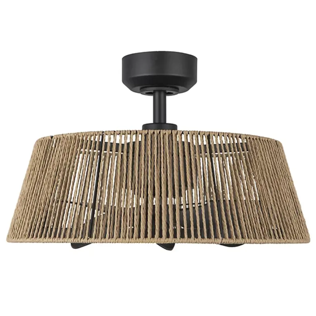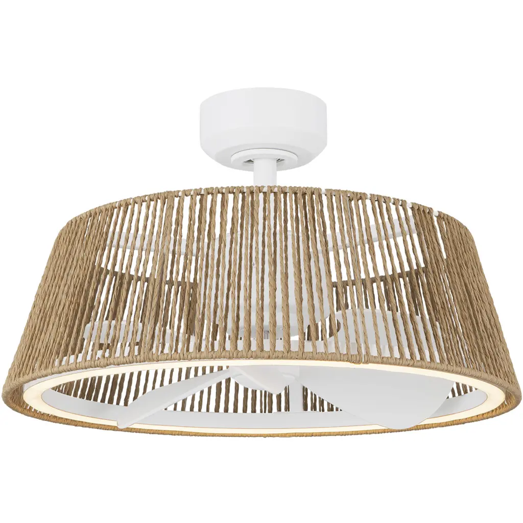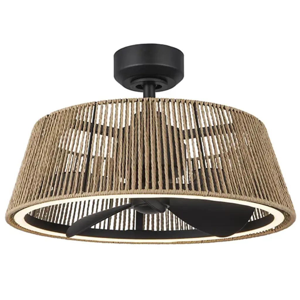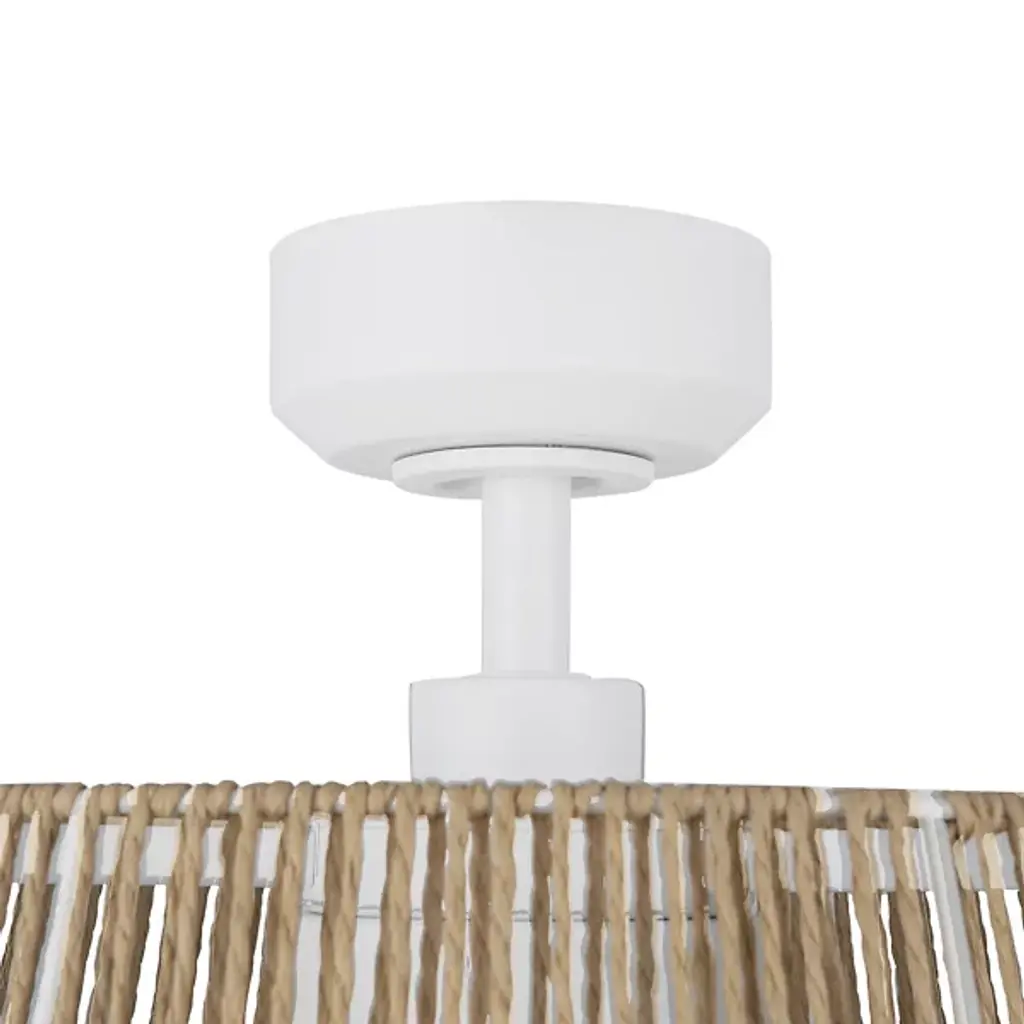 The Isla LED Fandelier from Kuzco Lighting integrates natural cotton rope into a functional air-moving solution. Designed by Kuzco Studio, this ceiling fan doubles as a light fixture with its polymeric diffuser casting downward illumination. The steel and rope construction adds texture, while the 6-speed operation ensures comfort control in living rooms and bedrooms. Mounted via a rod system that accommodates 18-degree ceiling slopes, this smart-compatible fan includes remote operation for convenience. Incorporating natural materials with modern technology creates a functional piece that circulates air efficiently while contributing to the room's overall aesthetic.