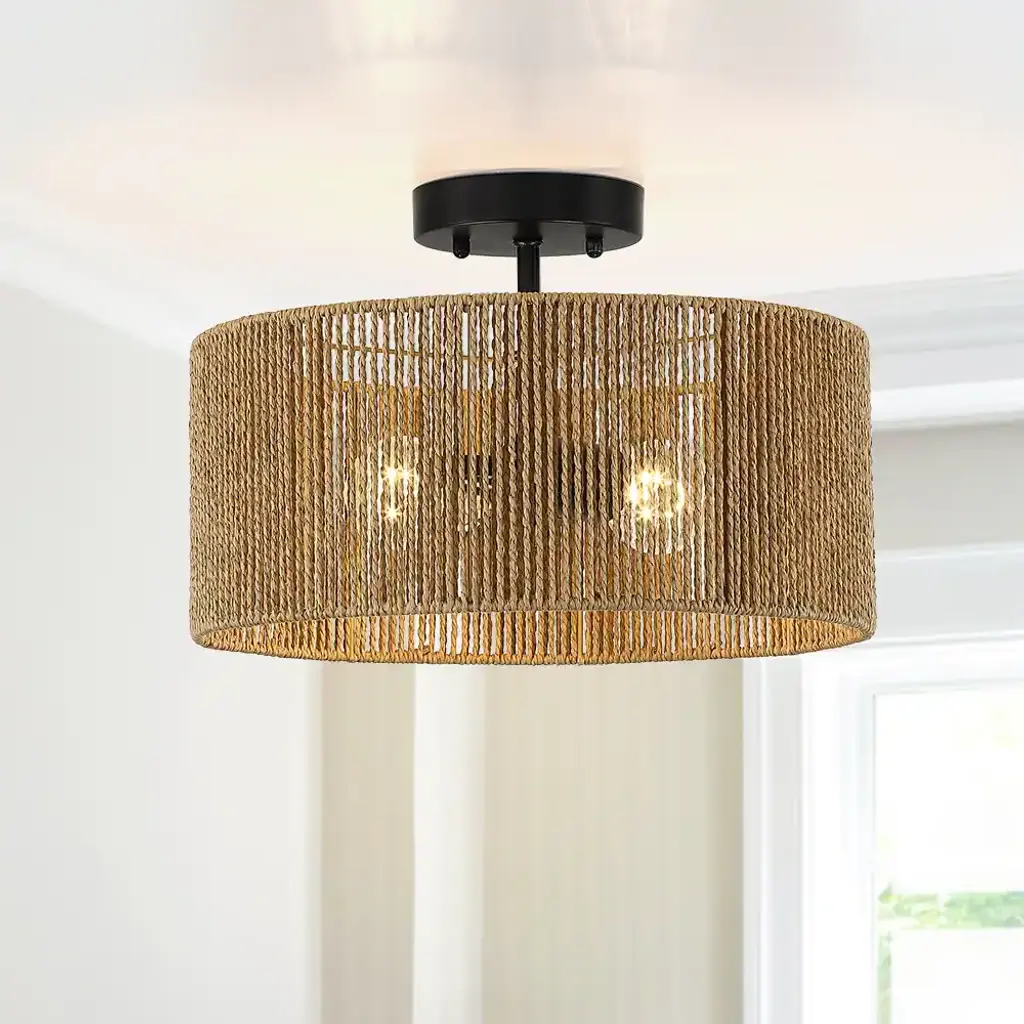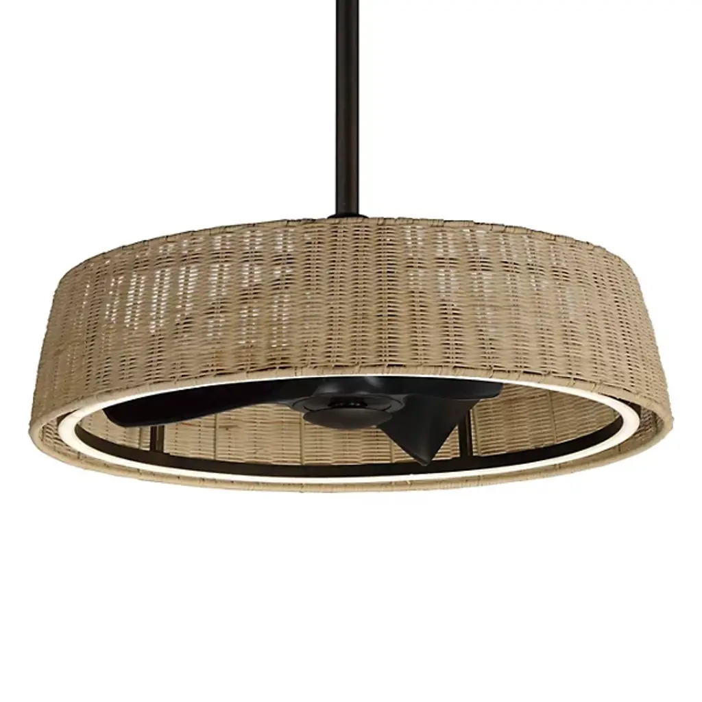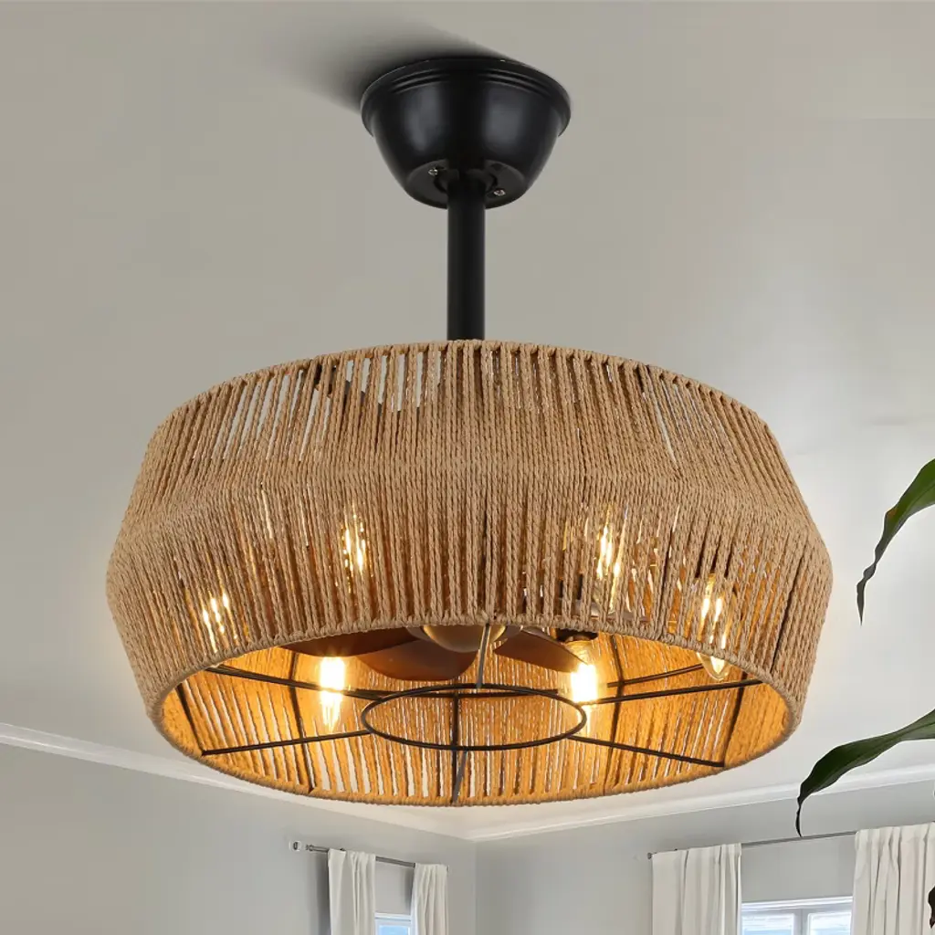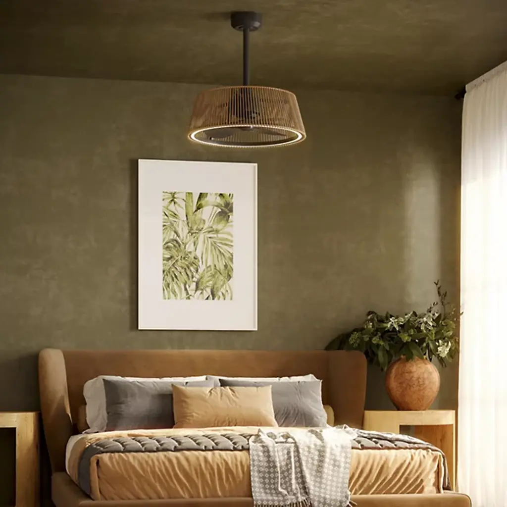 The Isla LED Fandelier from Kuzco Lighting integrates natural cotton rope into a functional air-moving solution. Designed by Kuzco Studio, this ceiling fan doubles as a light fixture with its polymeric diffuser casting downward illumination. The steel and rope construction adds texture, while the 6-speed operation ensures comfort control in living rooms and bedrooms. Mounted via a rod system that accommodates 18-degree ceiling slopes, this smart-compatible fan includes remote operation for convenience. Incorporating natural materials with modern technology creates a functional piece that circulates air efficiently while contributing to the room's overall aesthetic.