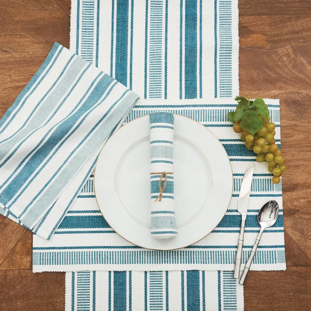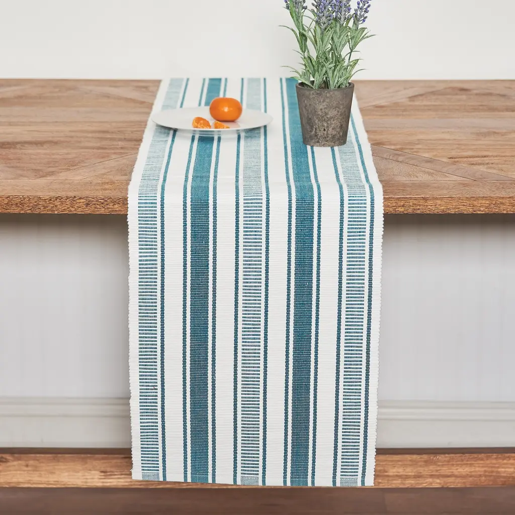 Bring a classically casual look to your tabletop with the Isley Stripe tabletop collection. In a combination of thick and thin stripes and an on-trend color way the Isley collection sets the tone for all-seasons. Perfect for mixing and matching to complete your casual, laid back tablescape. Crafted of cotton, this woven runner is machine washable for easy care. Finish your look with coordinating placemats and napkins available separately.Features:Classic toile print in soft blue on a off-white woven cotton table runnerWoven from yarn dyed cottonCrafted of 100-percent cottonFinished with a hemmed edgeIron for best resultsCoordinating placemats, napkins and table runner available separatelyMachine washable for easy care13inches wide x 72-inches long
