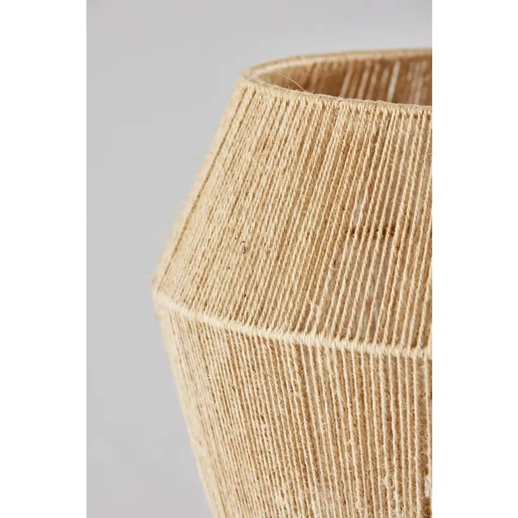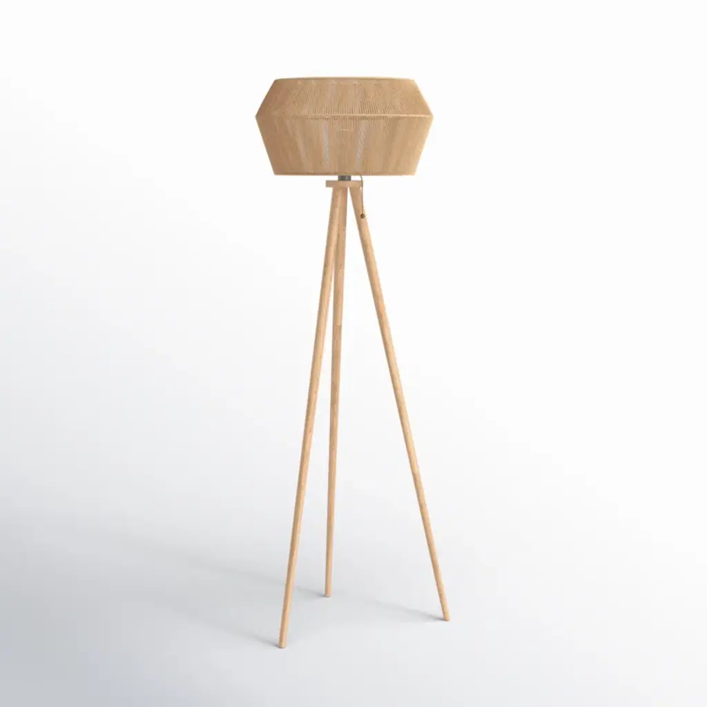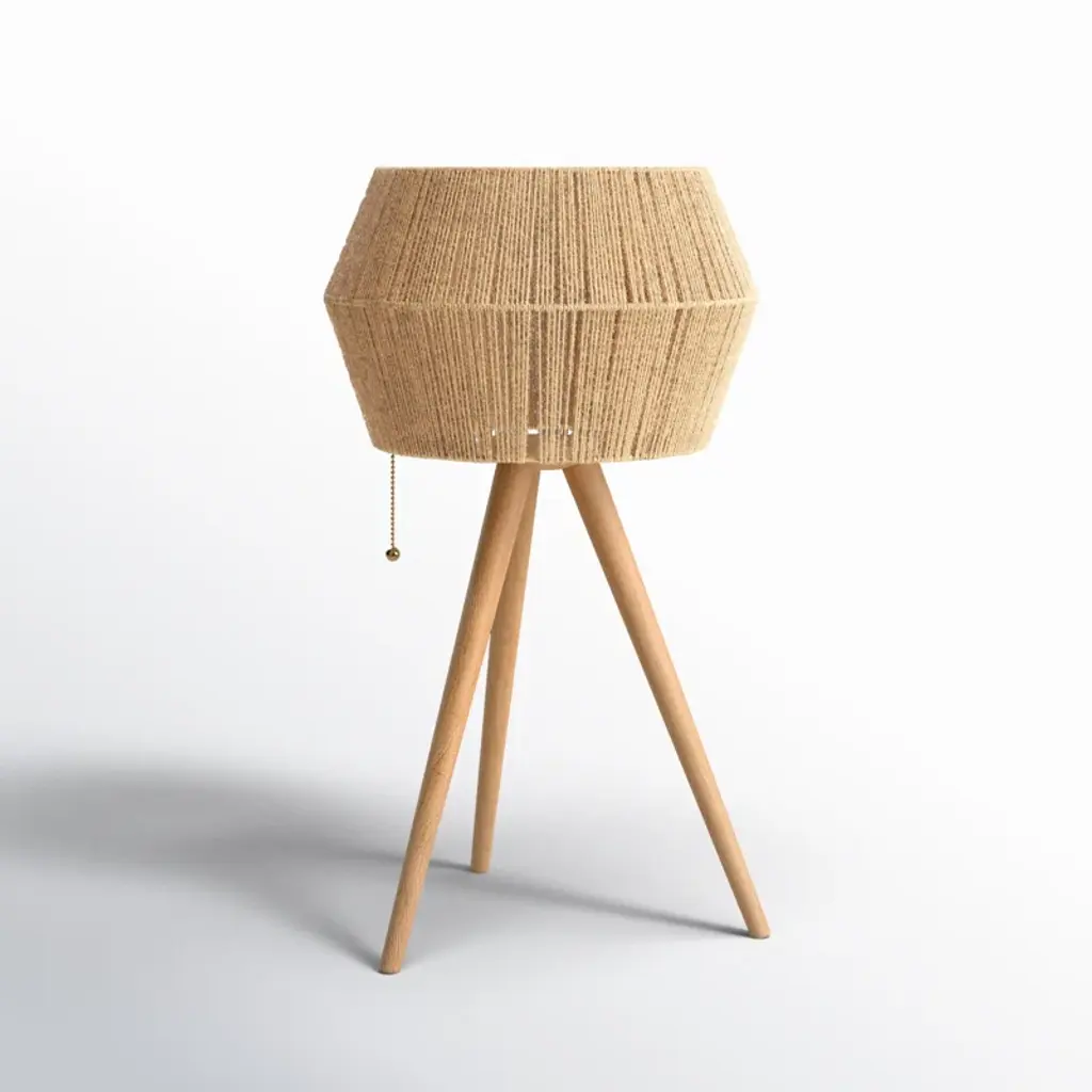 This stylish tripod lamp, crafted with a metal base, is perfect for accenting your living space. The unique burlap shade adds a touch of texture and casts a warm , inviting glow to any room.