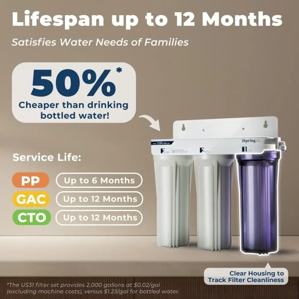 Ispring Us31-Nc Classic 3-Stage Under Sink Water Filtration System, Reduces Chloramine, Pfas - White