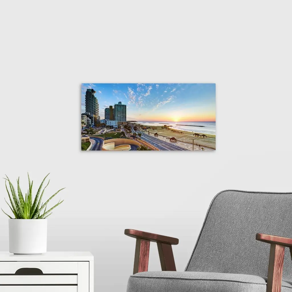 Israel, Tel Aviv, Elevated Dusk View Of The City Beachfront