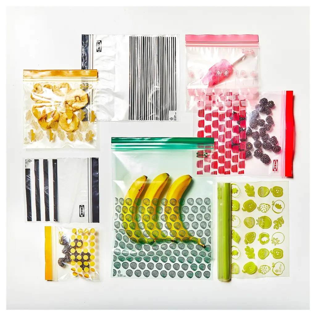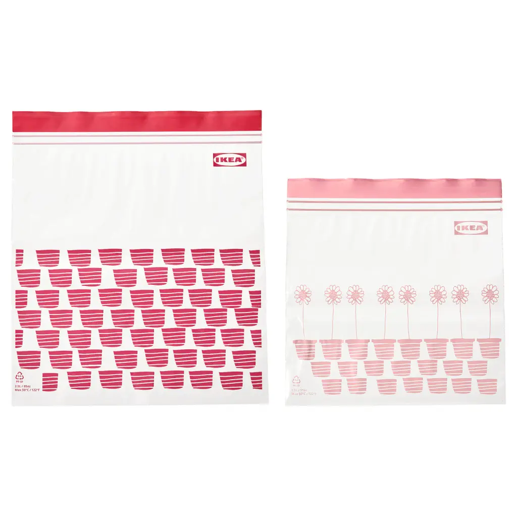 ISTAD Resealable bag - patterned red/pink 3/1 qt. ISTAD bags have a double seal which keeps the contents fresh for longer – and even tightly seals in liquids without leaking. Can be used over and over again since it can be washed by hand and re-sealed.