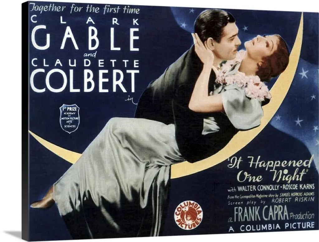 Classic Capra comedy about an antagonistic couple determined to teach each other about life. Colbert is an unhappy heiress who runs away from her affluent home in search of contentment. On a bus she meets newspaper reporter Gable, who teaches her how real people live. She returns the favor in this first of the 1930s screwball comedies. The plot is a framework for an amusing examination of war between the sexes. Colbert and Gable are superb as affectionate foes. Remade as the musicals Eve Knew Her Apples and You Can't Run Away From It.