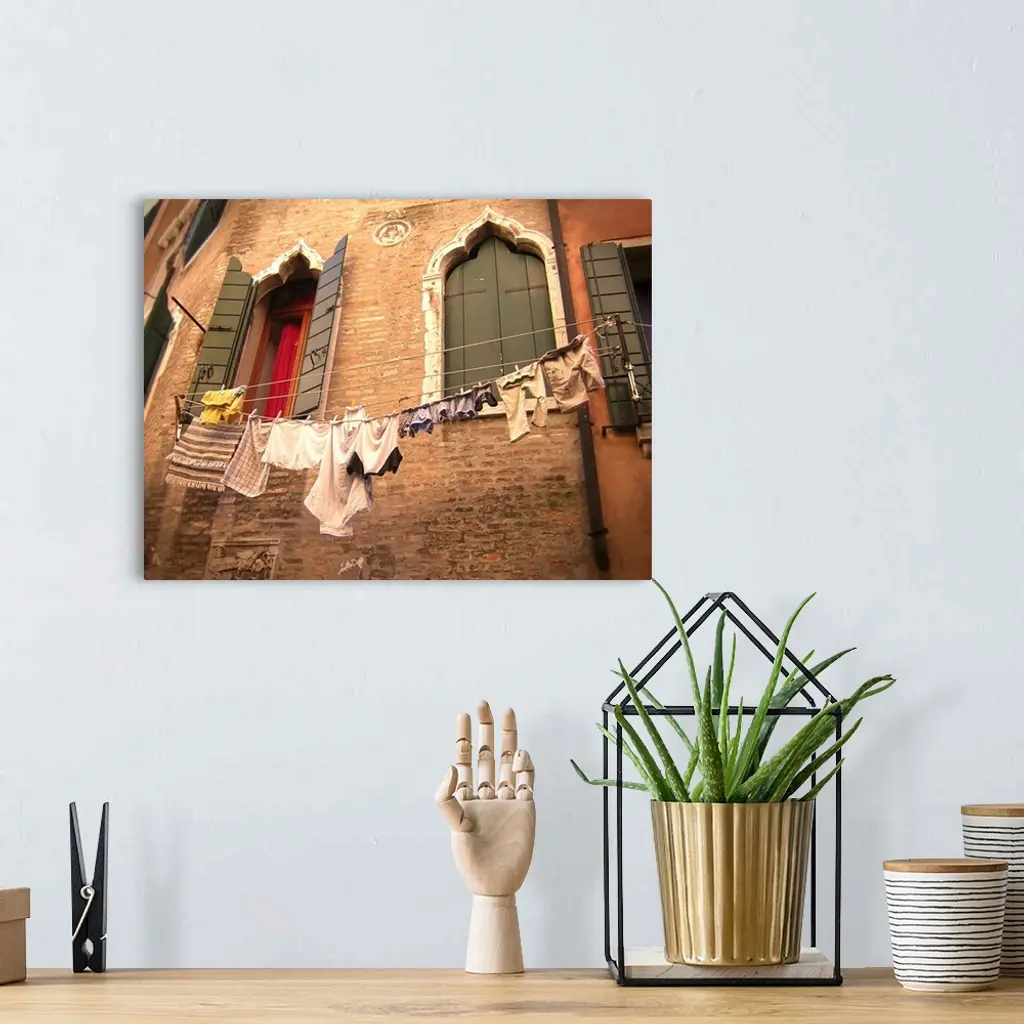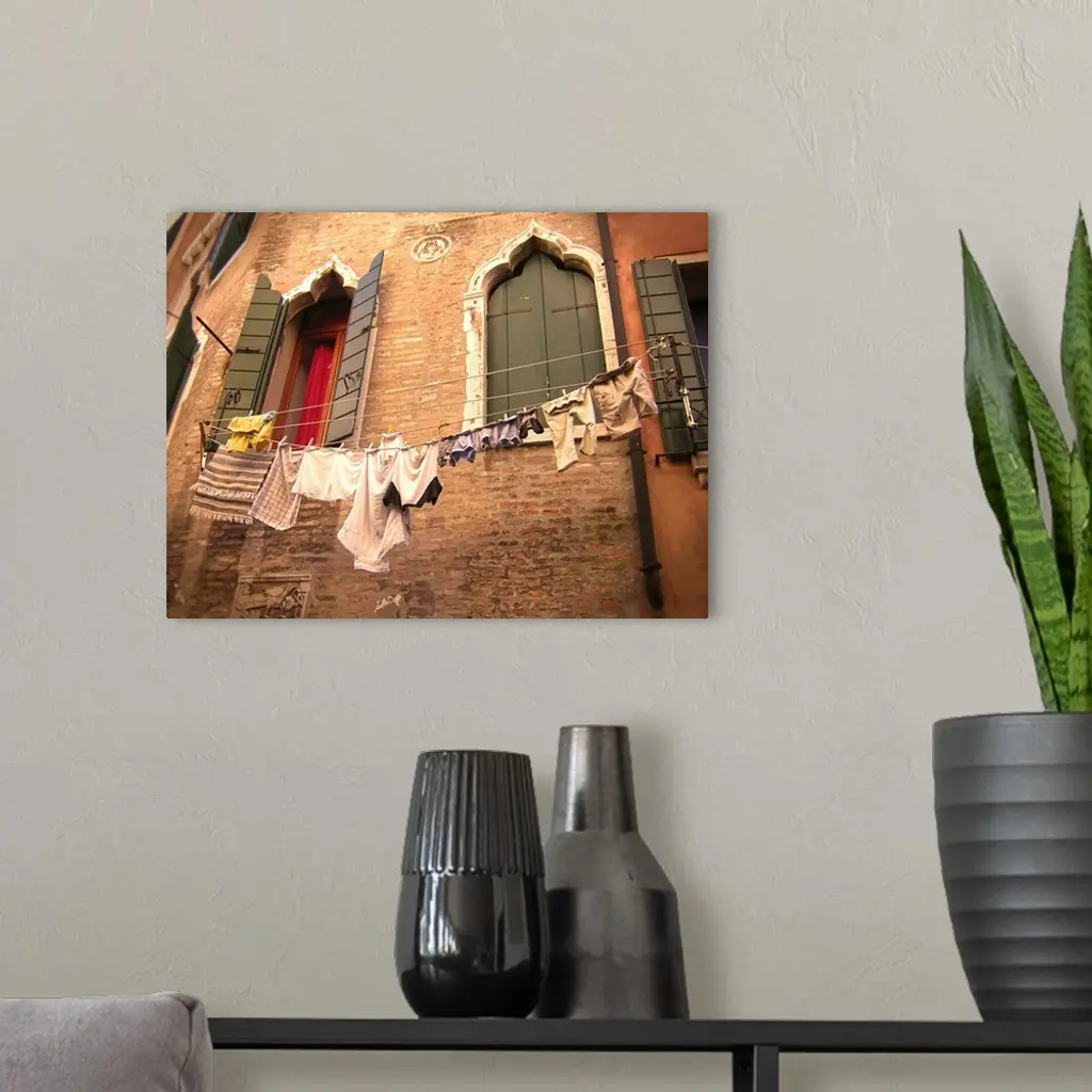 Italian building with hanging washing wall art for home and office decor. Discover canvas art prints, photos, mural, big canvas art and framed wall art in GreatBigCanvas.com's varied collections.
