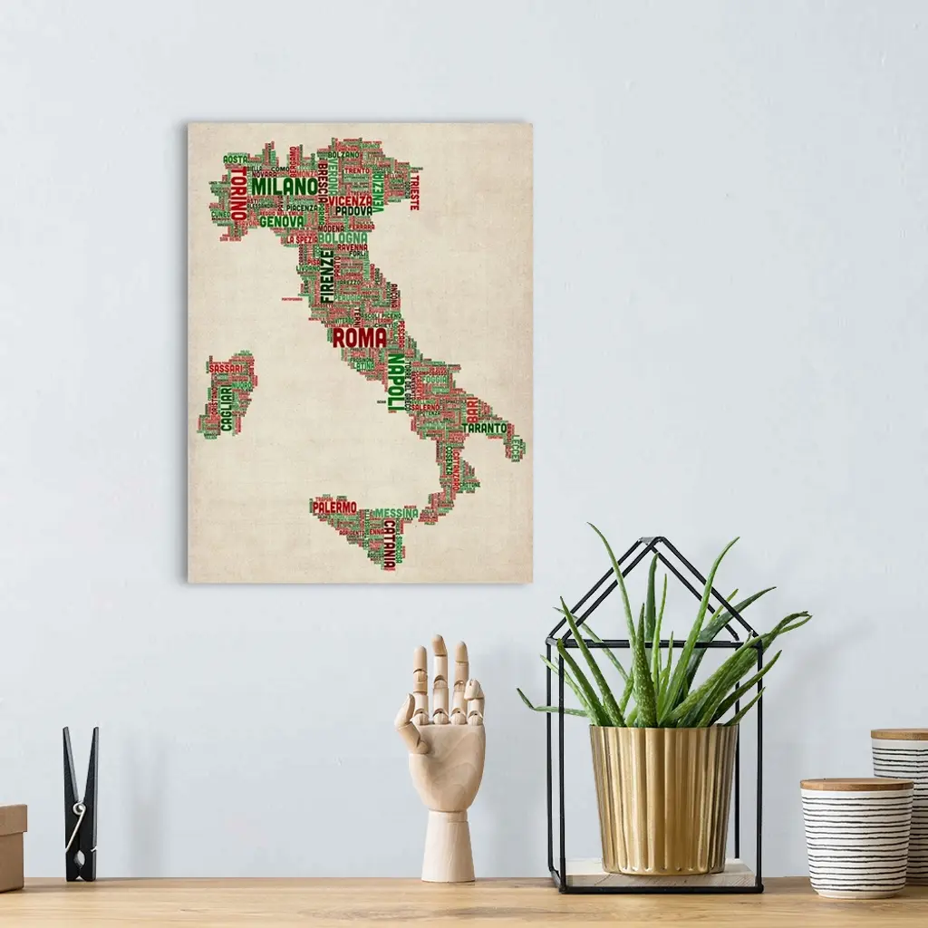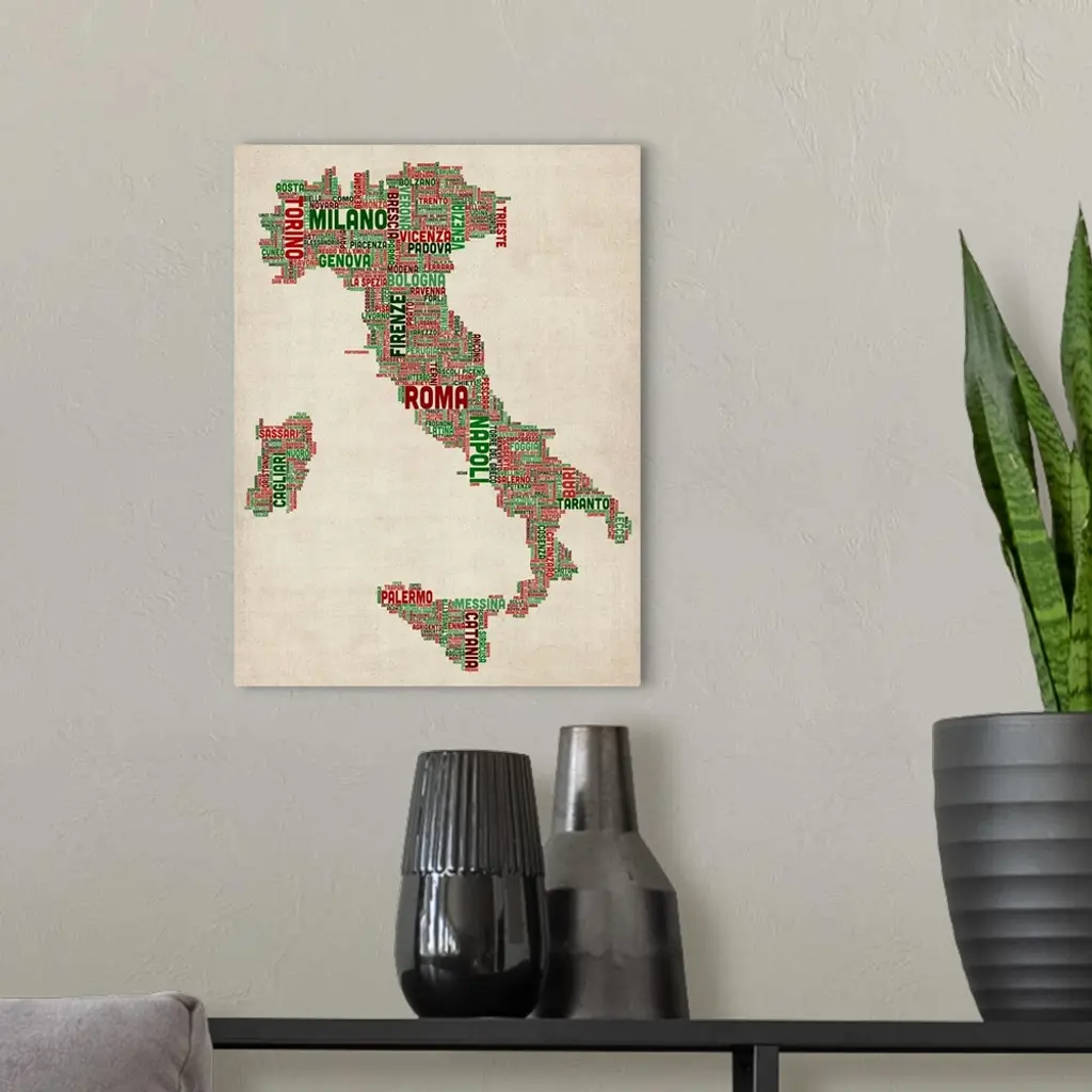 Italian Cities Text Map, Italian Colors on Parchment wall art for home and office decor. Discover canvas art prints, photos, mural, big canvas art and framed wall art in GreatBigCanvas.com's varied collections.