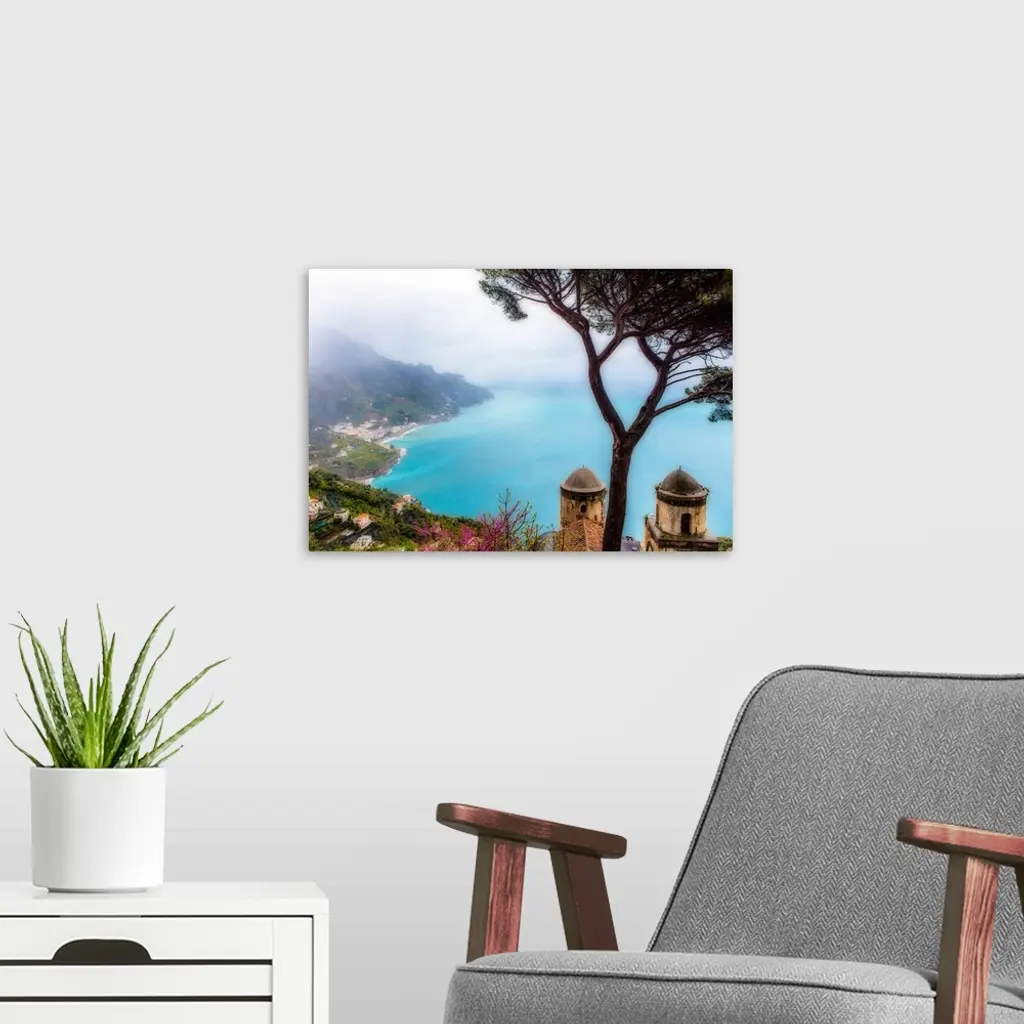 High angle view of the Amalfi Coast at Ravello, Campania, Italy.