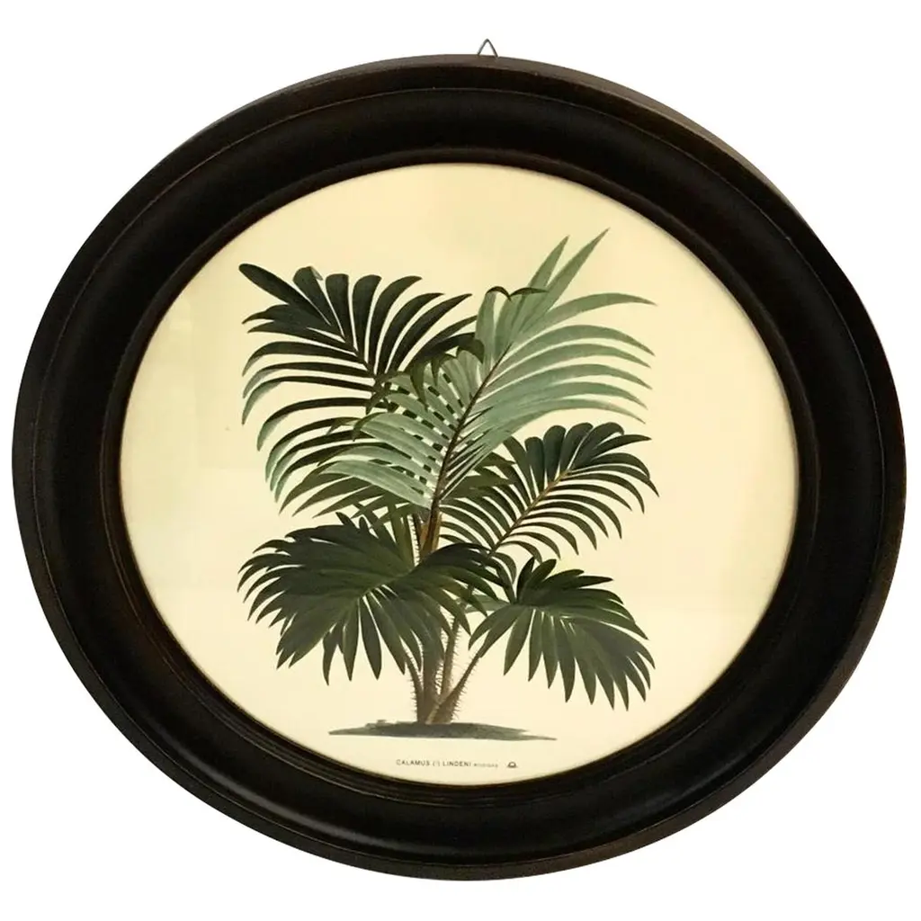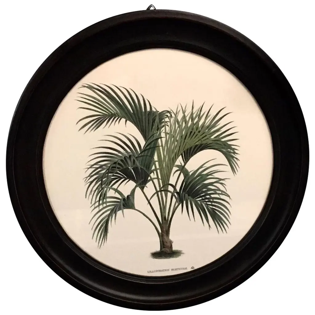Italian Contemporary Hand Colored 4 Print With Round Black Handmade Wooden Frame