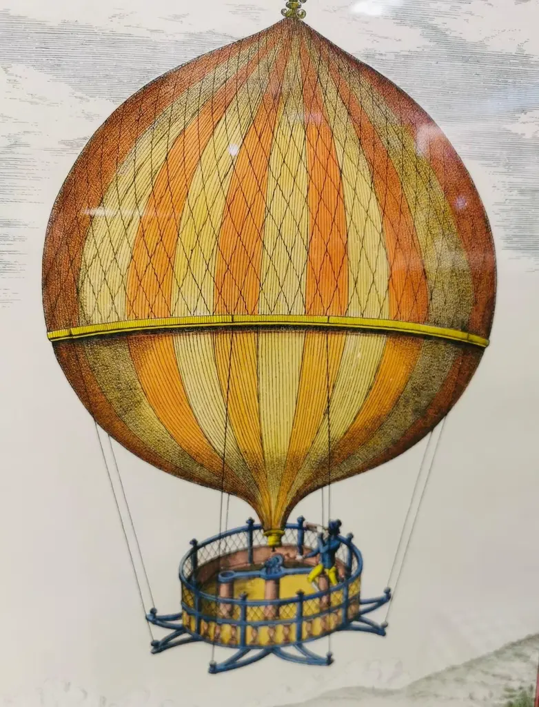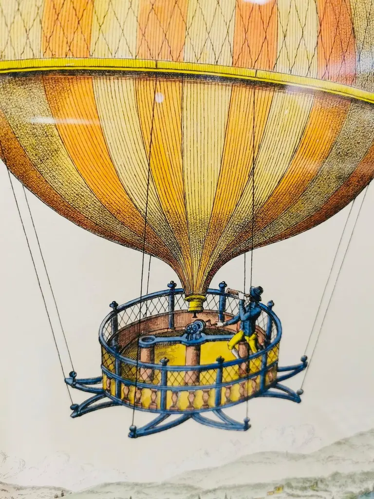 Italian Contemporary Handmade Hot-Air Balloon Colored Print With Frame 1 Of 3