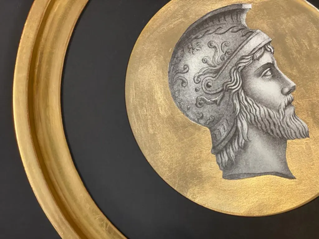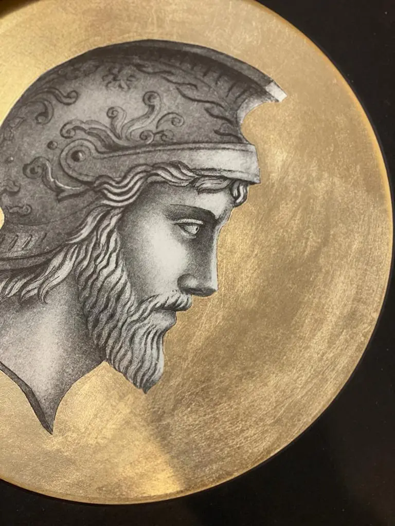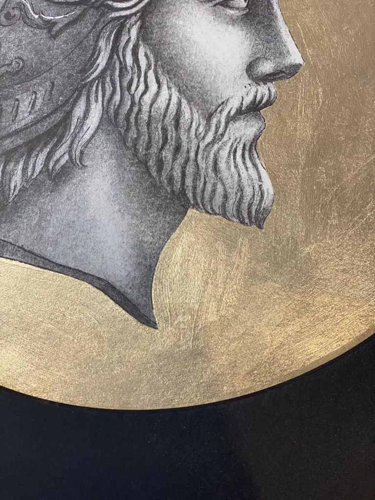 Italian Contemporary Print Of Ancient Profile With Round Gold Wooden Frame