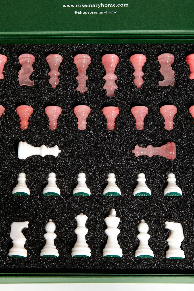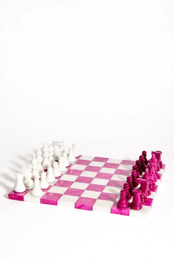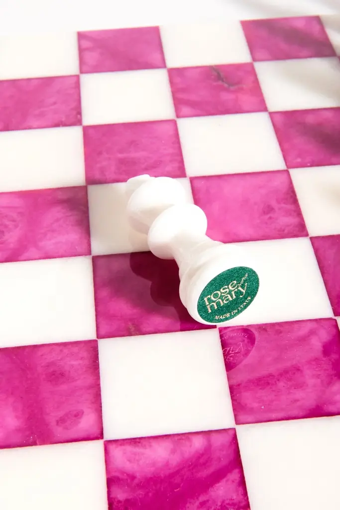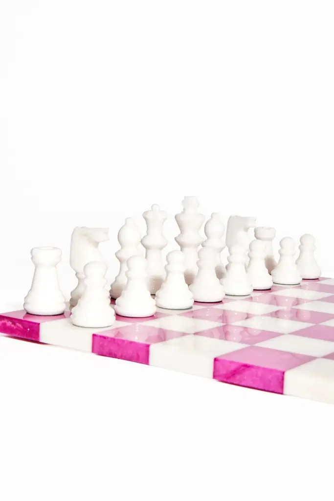 Italian Rose Magenta/white Large Alabaster Chess Set