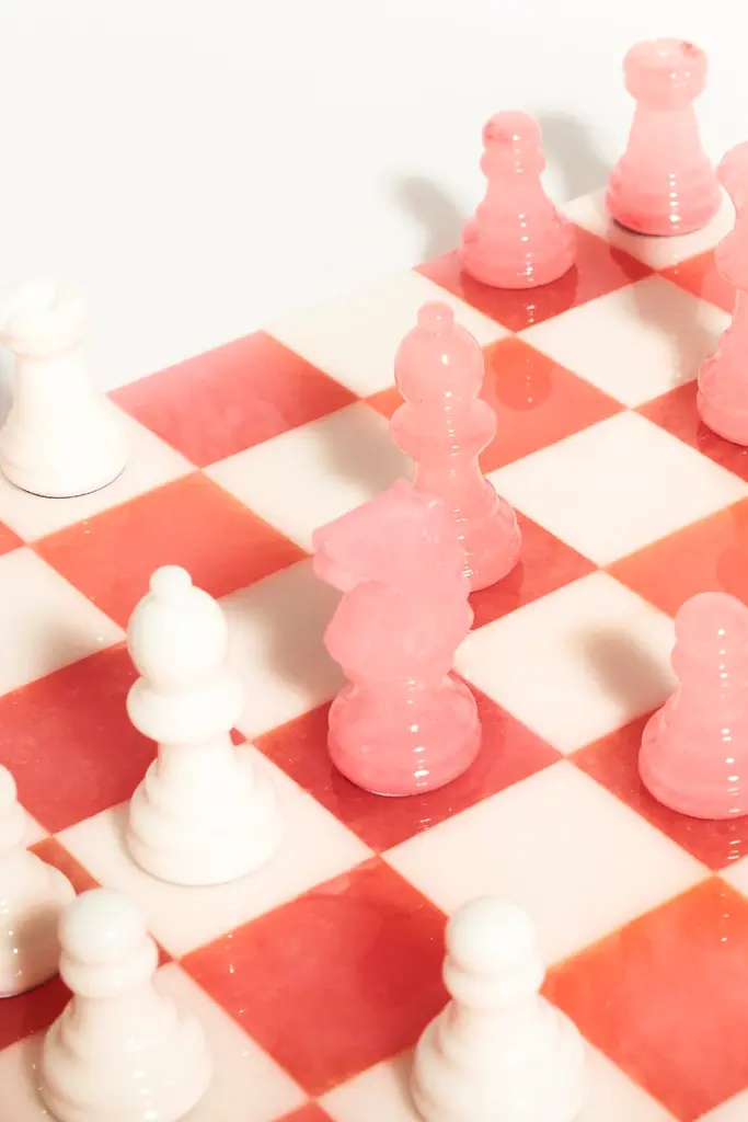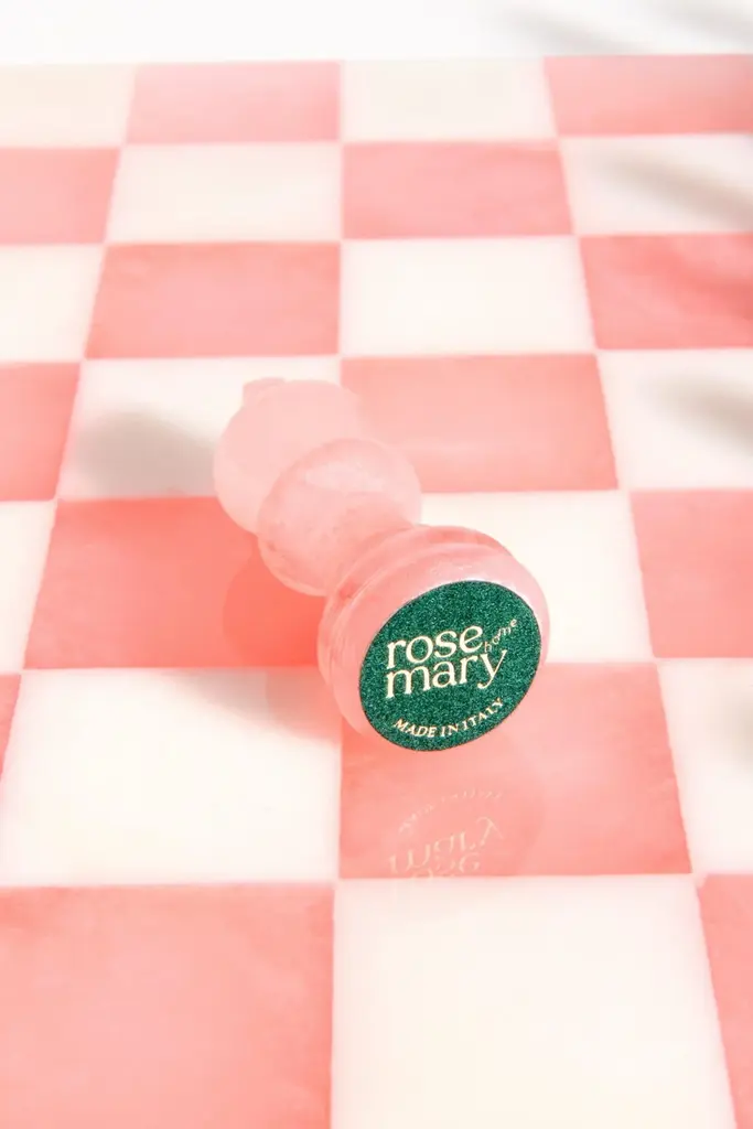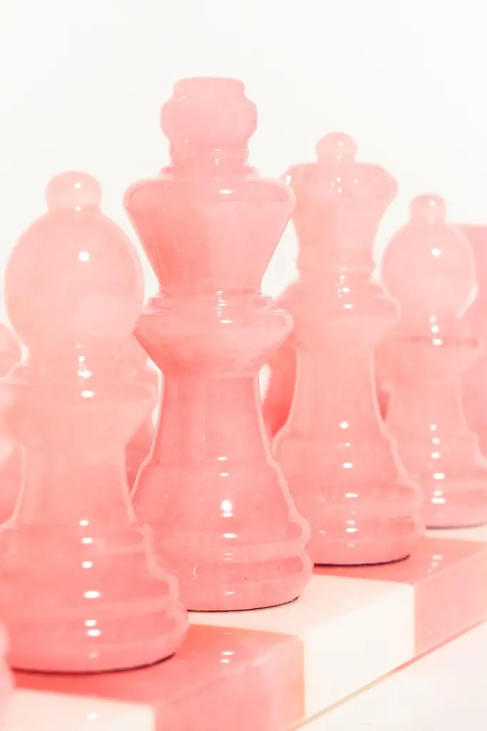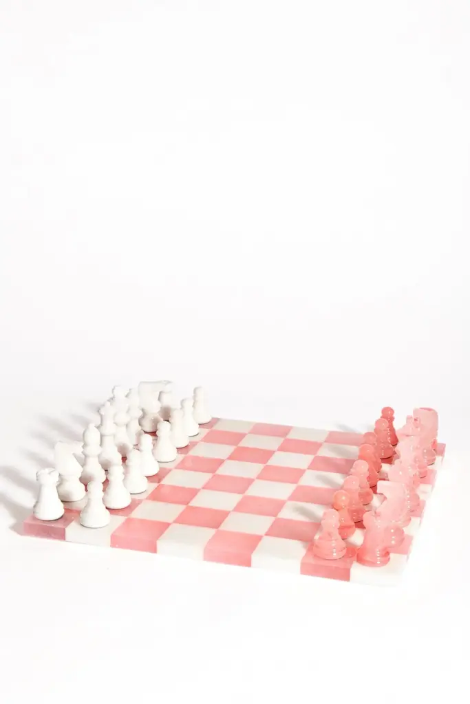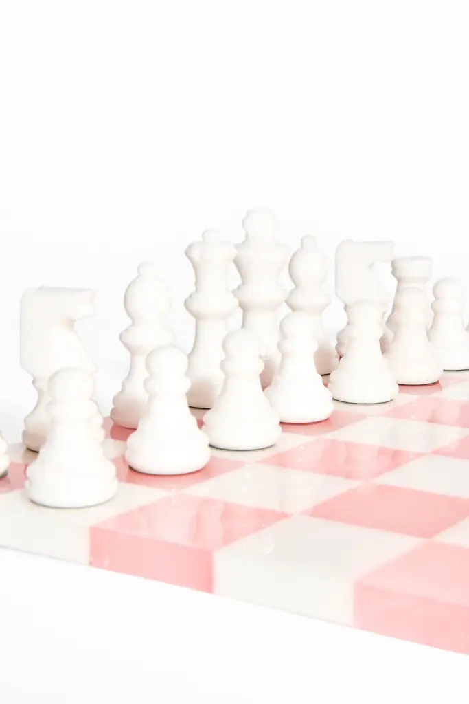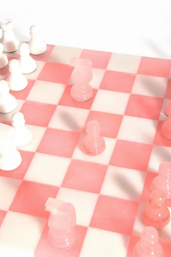 Skilled artisans carved this luxury chess set from Italian Alabaster, a natural stone native to Volterra, Italy. Alabaster has a unique vein pattern so the colors may vary. Each chess set features two extra queens. Please treat with care and keep out of direct sunlight. Clean with a damp cloth. Avoid all contact with harsh chemicals and acidic substances, such as wine, vinegar, and citrus. Each chess set comes with a luxury keep box produced in England.