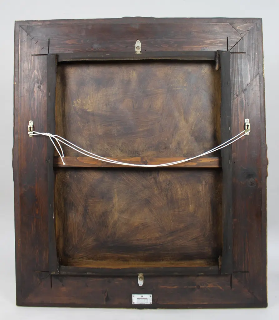 Italian School Oil in the Renaissance Style Set in Carved Giltwood FrameA finely painted oil on canvas in the Renaissance manner, likely by an Italian studio of the mid 20th century. The composition features a central winged putto surrounded by angelic and celestial forms, rendered in soft tones with expressive movement and classical influence. The work evokes the spiritual drama and anatomical style of late Renaissance or Mannerist painters.Set in a beautifully carved giltwood frame, hand-finished in genuine gold leaf, the piece offers strong decorative impact and a timeless quality.Medium: Oil on canvasStyle: Renaissance / Mannerist RevivalFrame: Carved wood with gold leaf gildingDimensions:Framed: 104 x 90 cm (41 x 35.5 in)Condition: Canvas is stable with light craquelure; frame in very good condition with minimal wear to gilding. Ready to hang.Provenance: Removed from a country house in Worcestershire