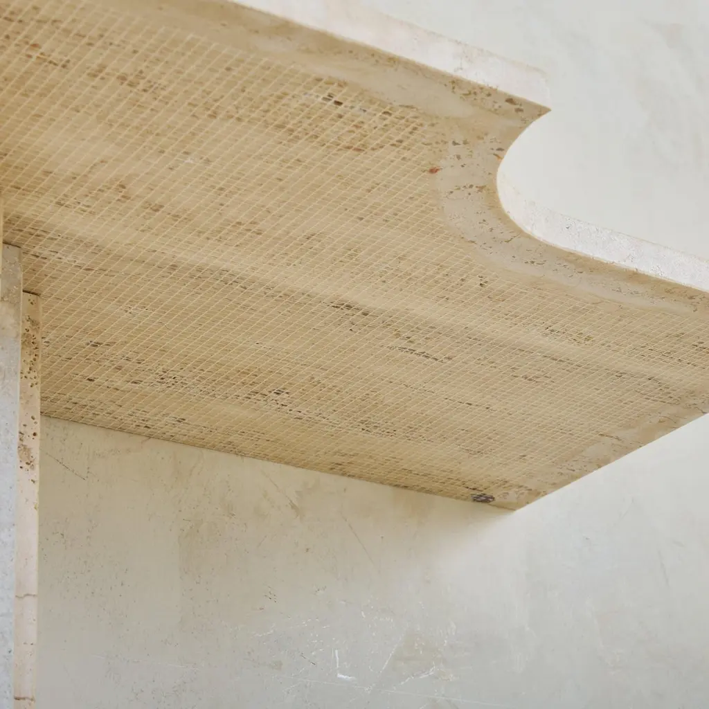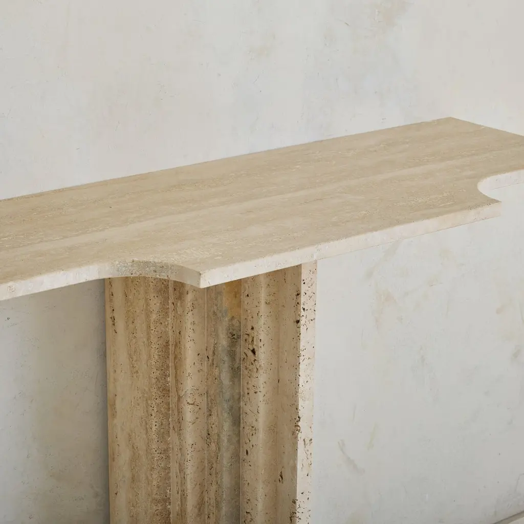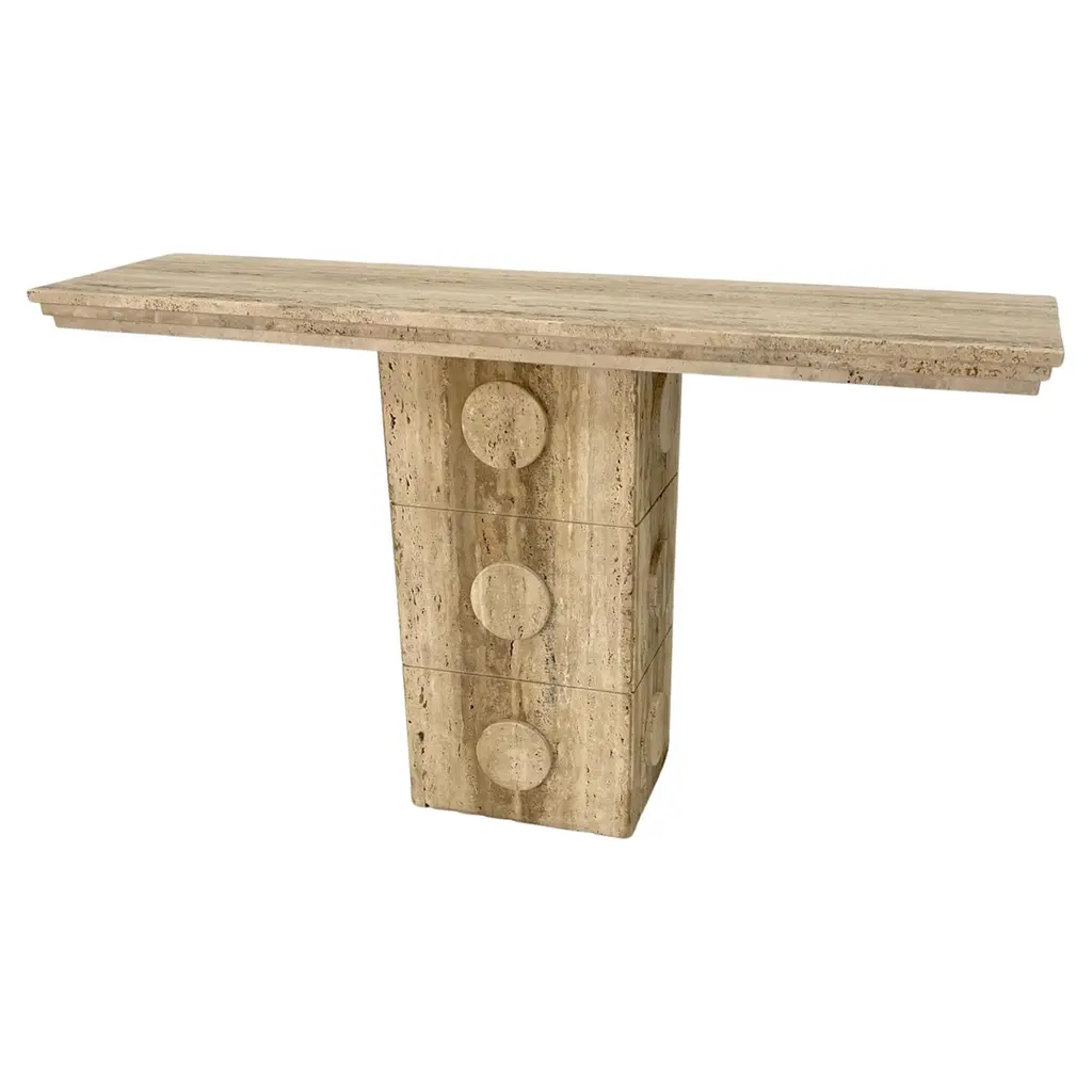 Italian Travertine Console In The Style Of Carlo Scarpa, 1970s - 2 Available