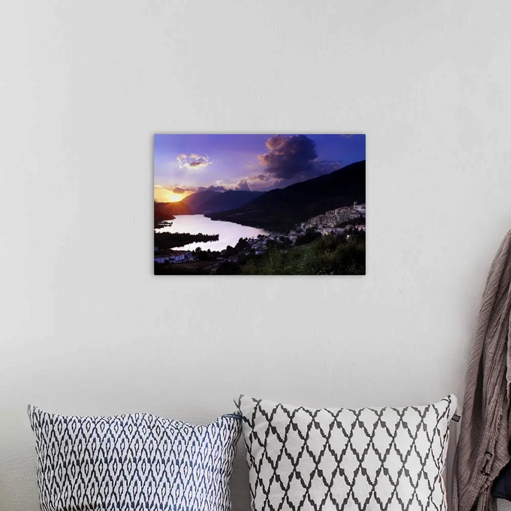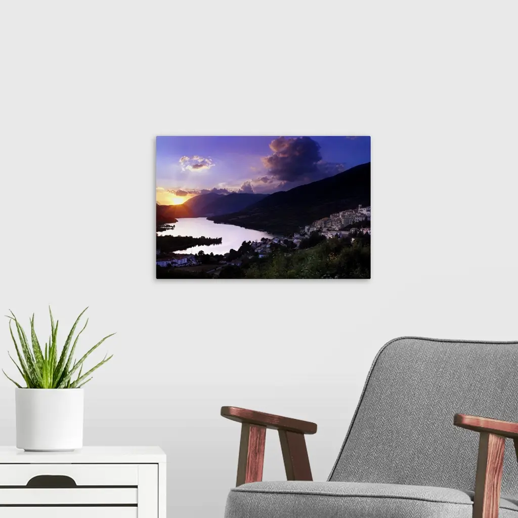 Italy, Abruzzo, Abruzzo National Park, Barrea, Town and lake wall art for home and office decor. Discover canvas art prints, photos, mural, big canvas art and framed wall art in GreatBigCanvas.com's varied collections.