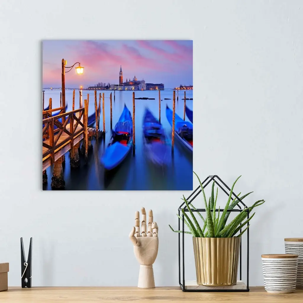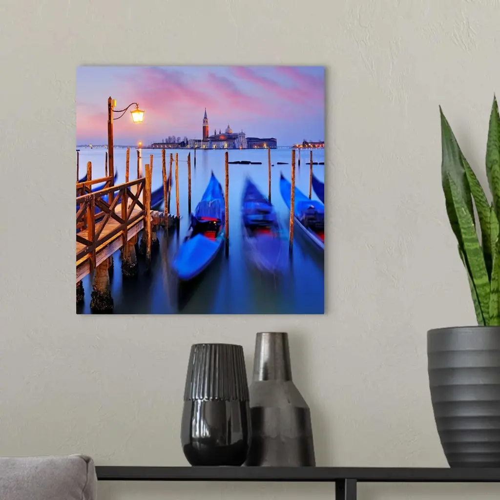 Italy, Adriatic Coast, Venice, Gondolas On The Waterfront Of Saint Mark's Basin