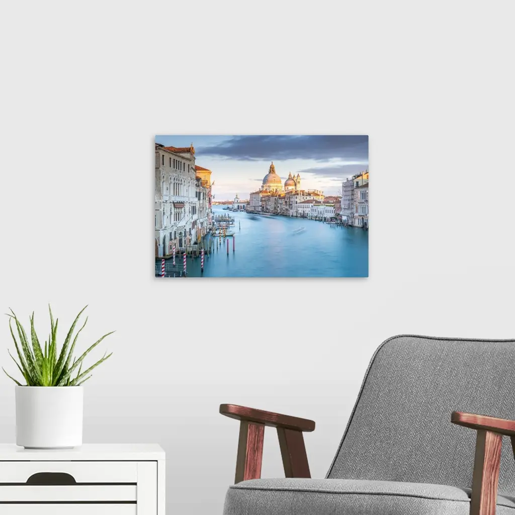 Italy, Veneto, Venezia district, Venetian Lagoon, Adriatic Coast, Venice, Grand Canal, Santa Maria della Salute, Basilica di Santa Maria della Salute.