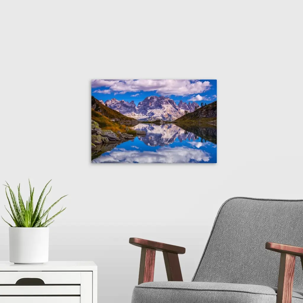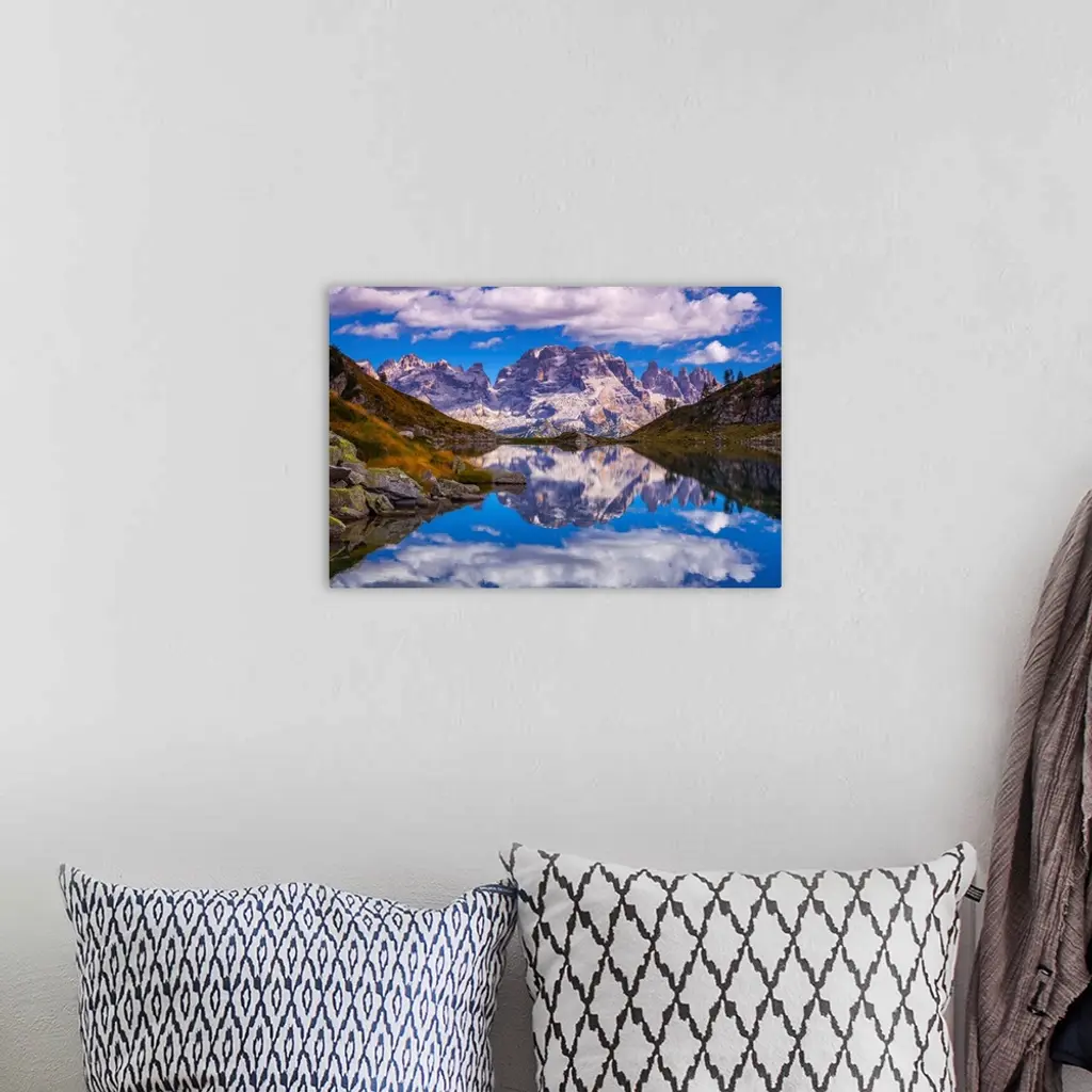 Italy, Alps, Dolomites, Val Rendena, Ritorto Lake With The Brenta Peak In The Background