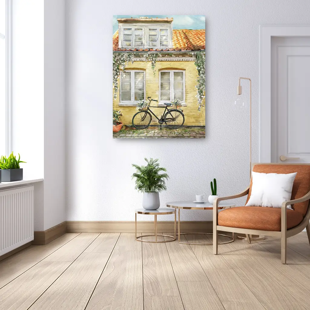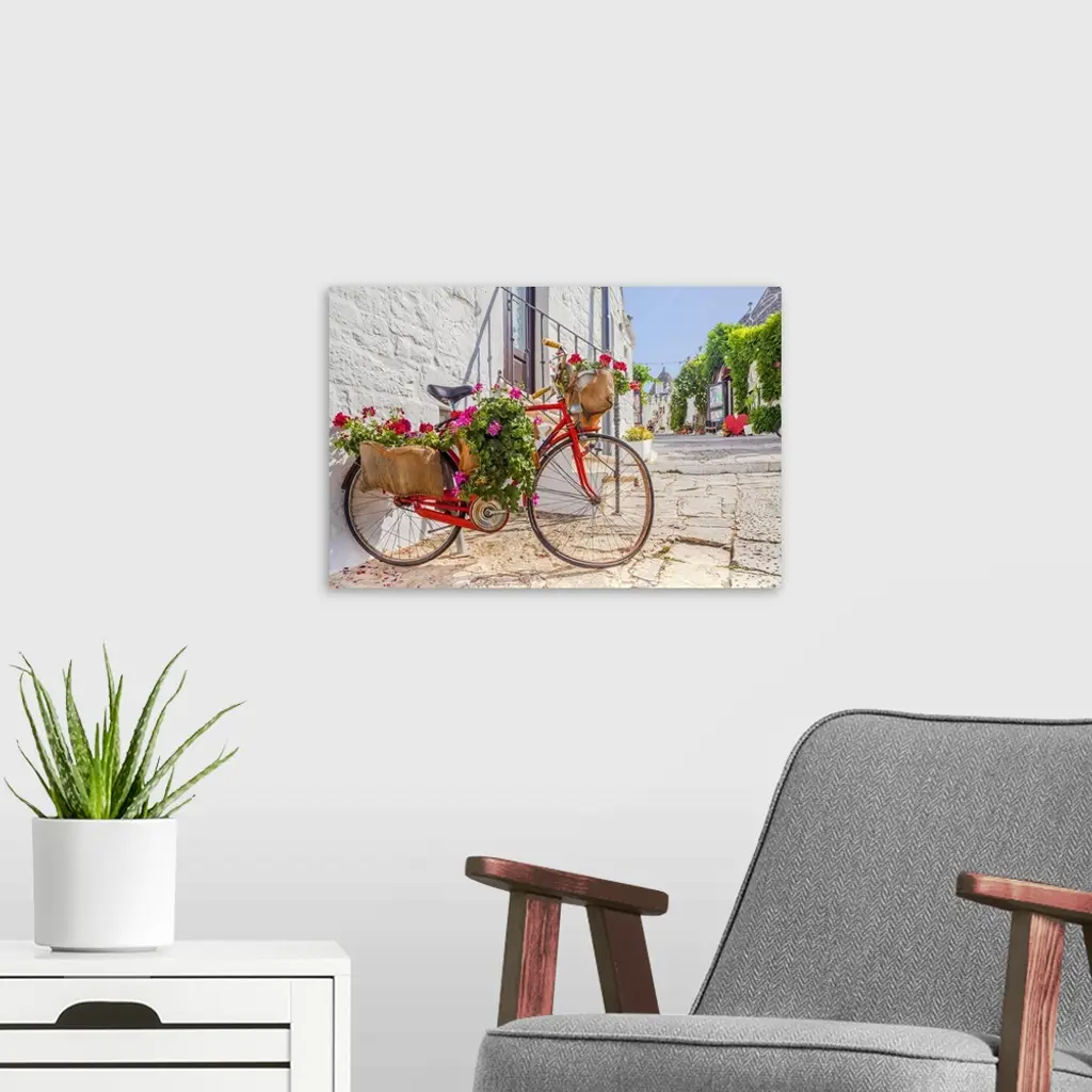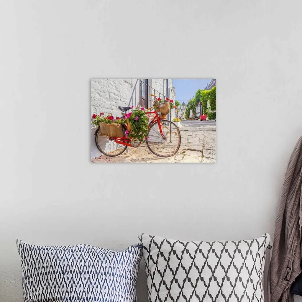 Italy, Apulia, Bari district, Itria Valley, Alberobello, Bicycle in a typical street of Alberobello.