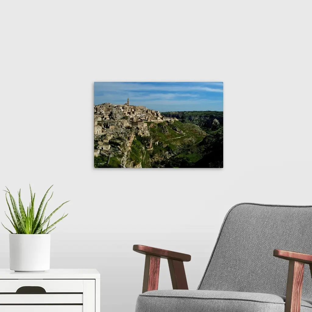 Italy, Basilicata, Matera, Sasso Caveoso, the gravina wall art for home and office decor. Discover canvas art prints, photos, mural, big canvas art and framed wall art in GreatBigCanvas.com's varied collections.