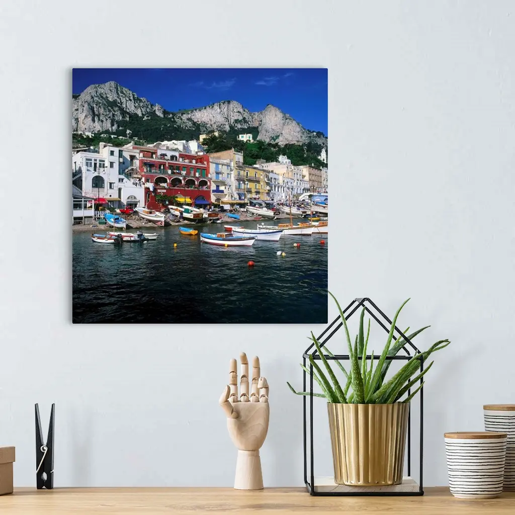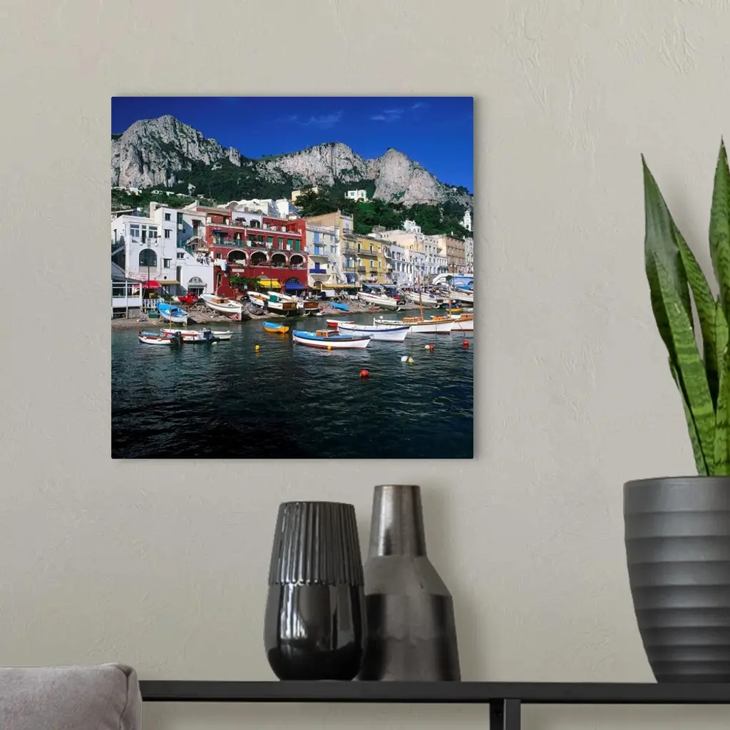 Italy, Campania, Capri, Marina Grande, harbor wall art for home and office decor. Discover canvas art prints, photos, mural, big canvas art and framed wall art in GreatBigCanvas.com's varied collections.