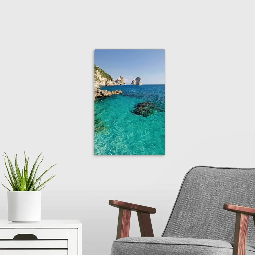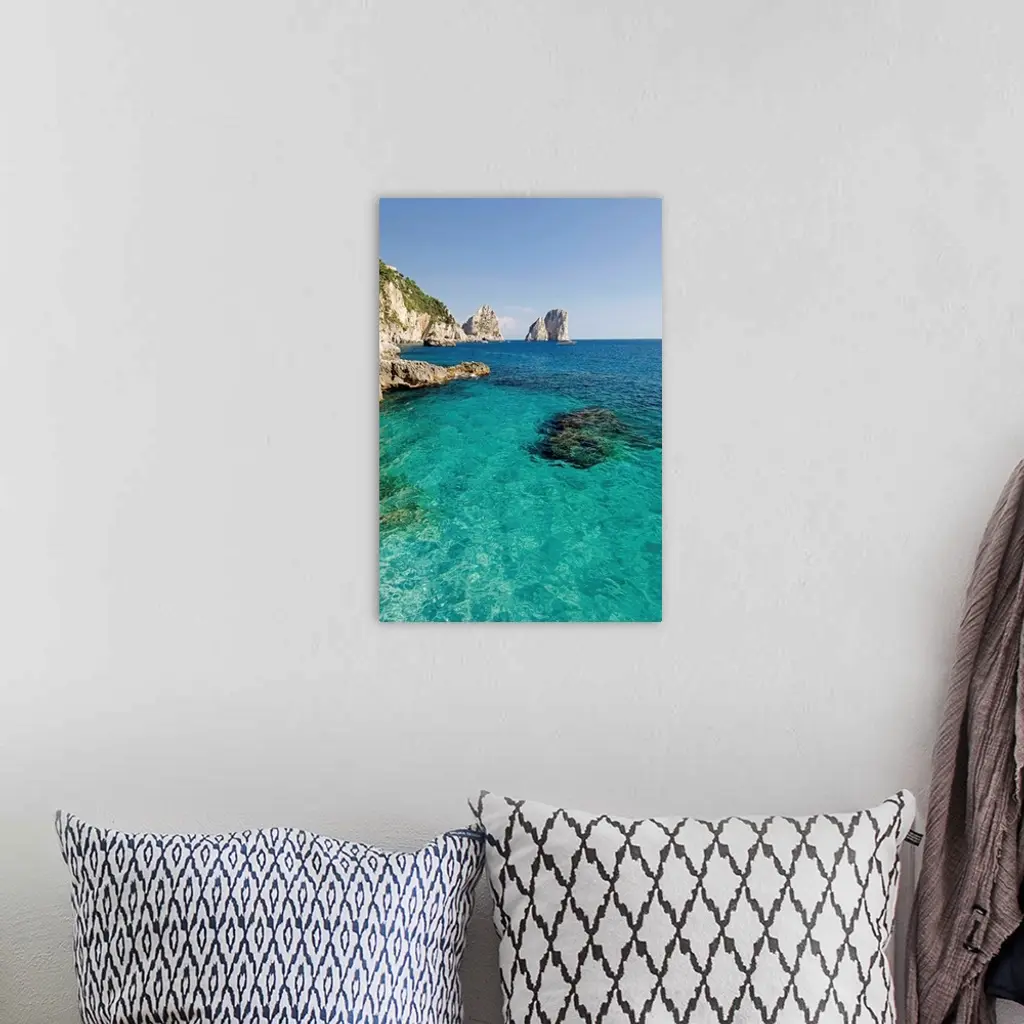 Italy, Campania, Capri, Marina Piccola beach, view towards Faraglioni wall art for home and office decor. Discover canvas art prints, photos, mural, big canvas art and framed wall art in GreatBigCanvas.com's varied collections.