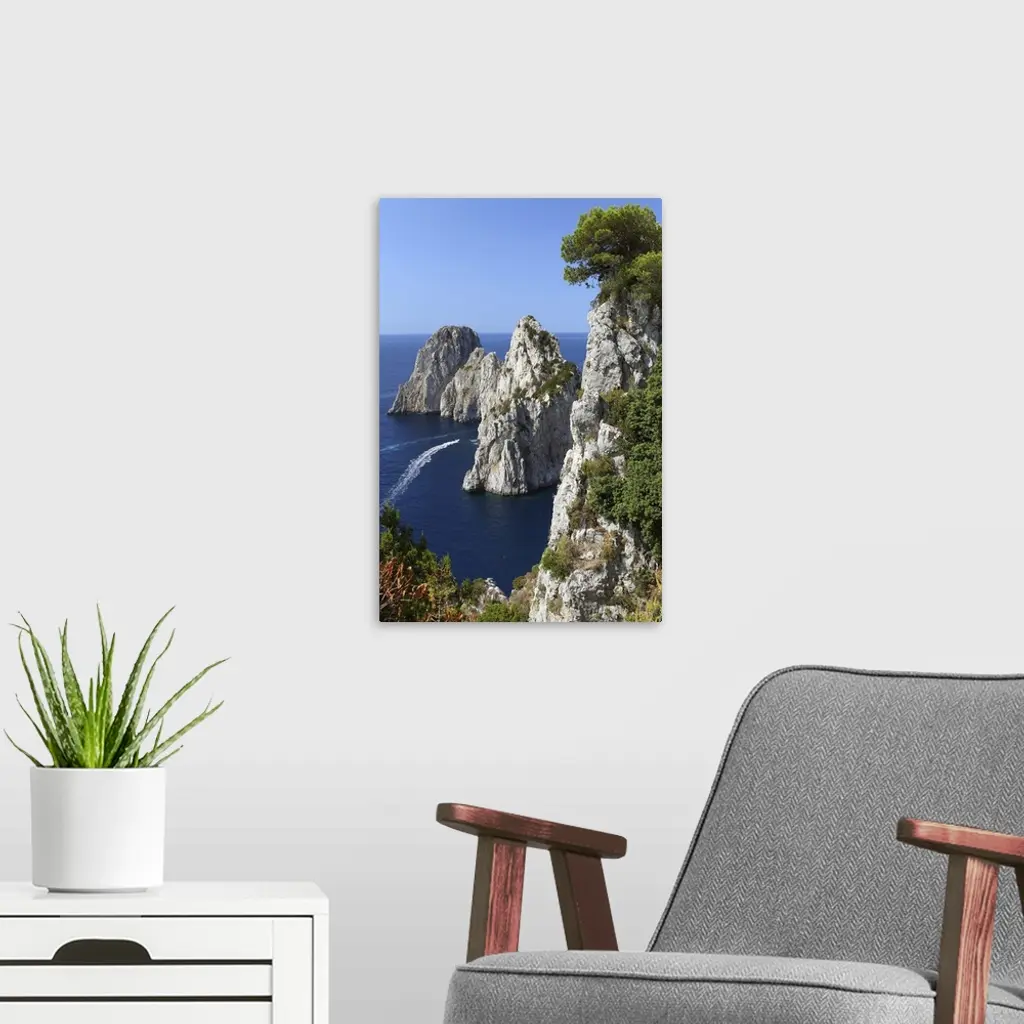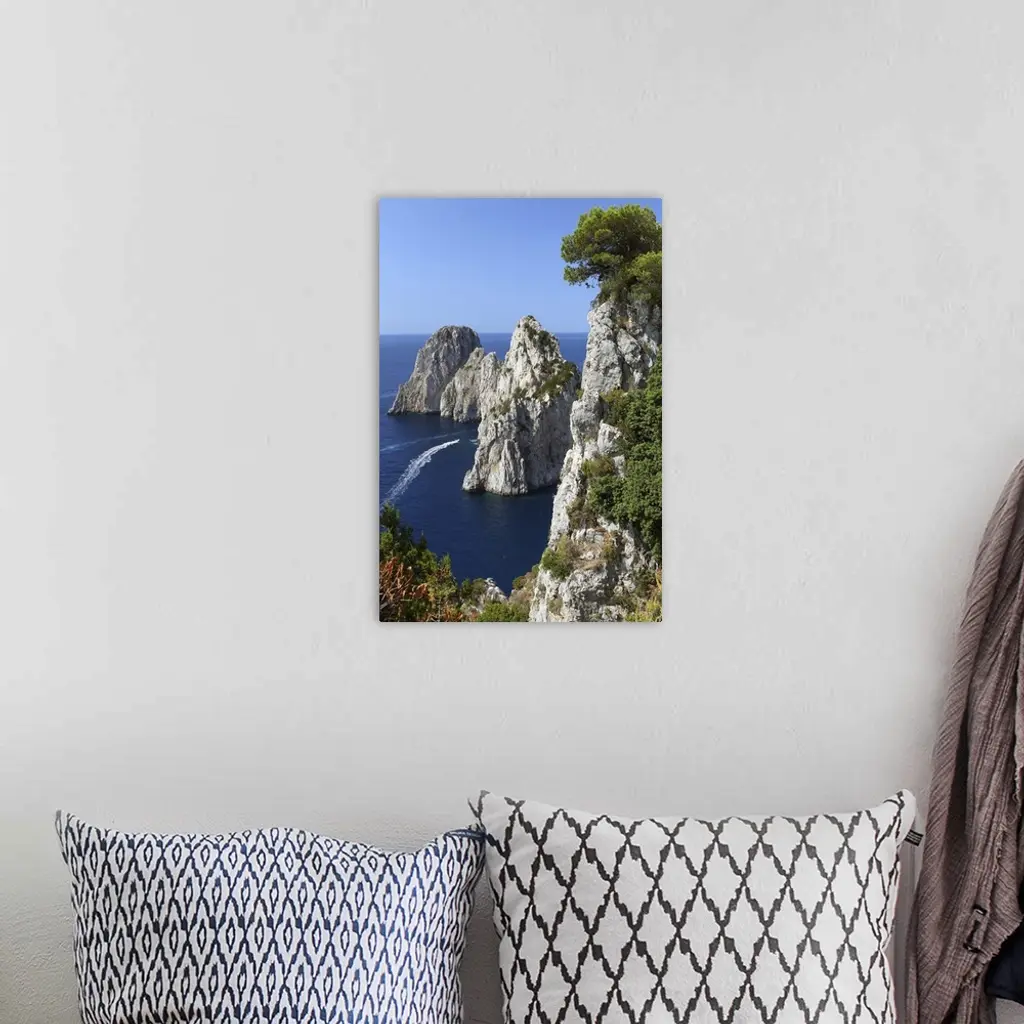 Italy, Campania, Capri, The Faraglioni (stack rocks) wall art for home and office decor. Discover canvas art prints, photos, mural, big canvas art and framed wall art in GreatBigCanvas.com's varied collections.
