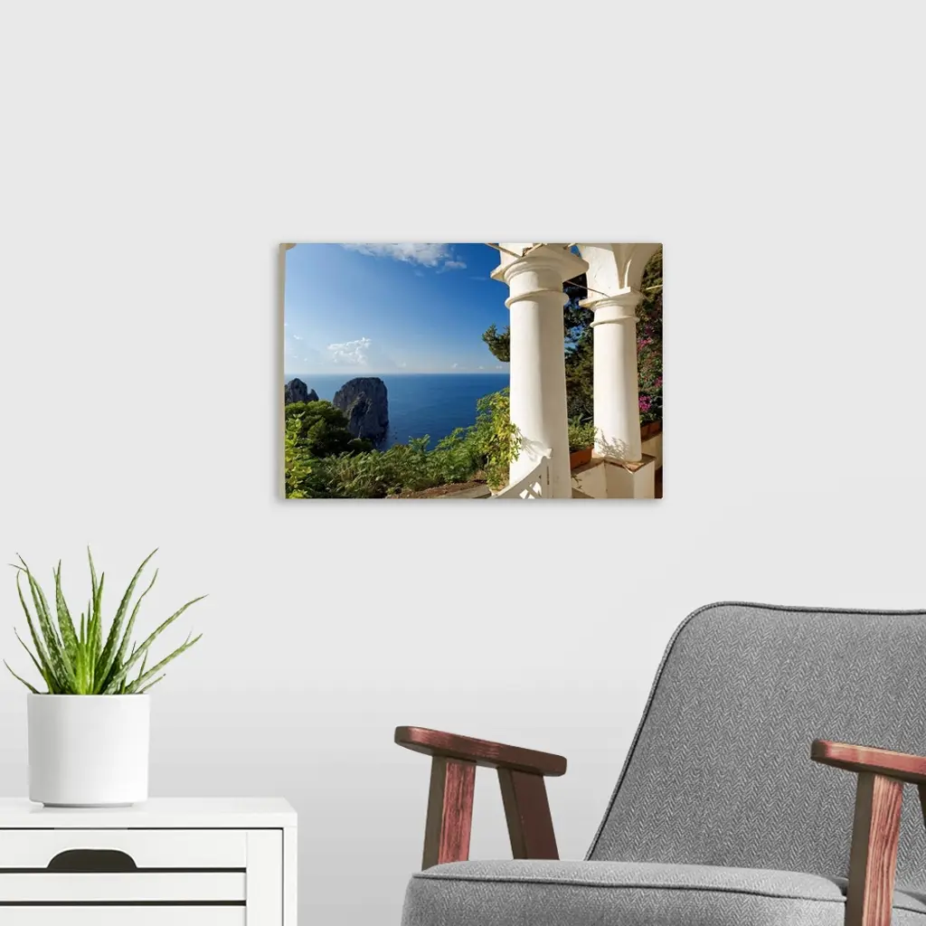 Italy, Campania, Capri, View from Punta Tragara towards Faraglioni wall art for home and office decor. Discover canvas art prints, photos, mural, big canvas art and framed wall art in GreatBigCanvas.com's varied collections.