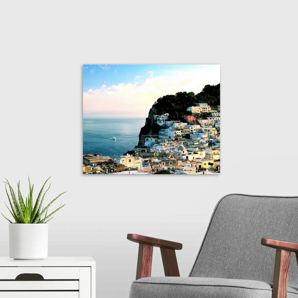Italy, Campania, Capri, view on town, Gulf of Naples and Mount Vesuvius wall art for home and office decor. Discover canvas art prints, photos, mural, big canvas art and framed wall art in GreatBigCanvas.com's varied collections.