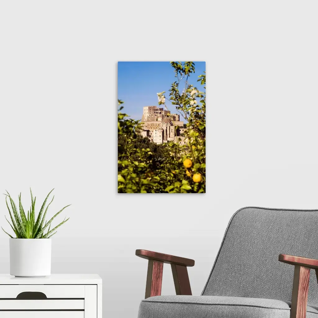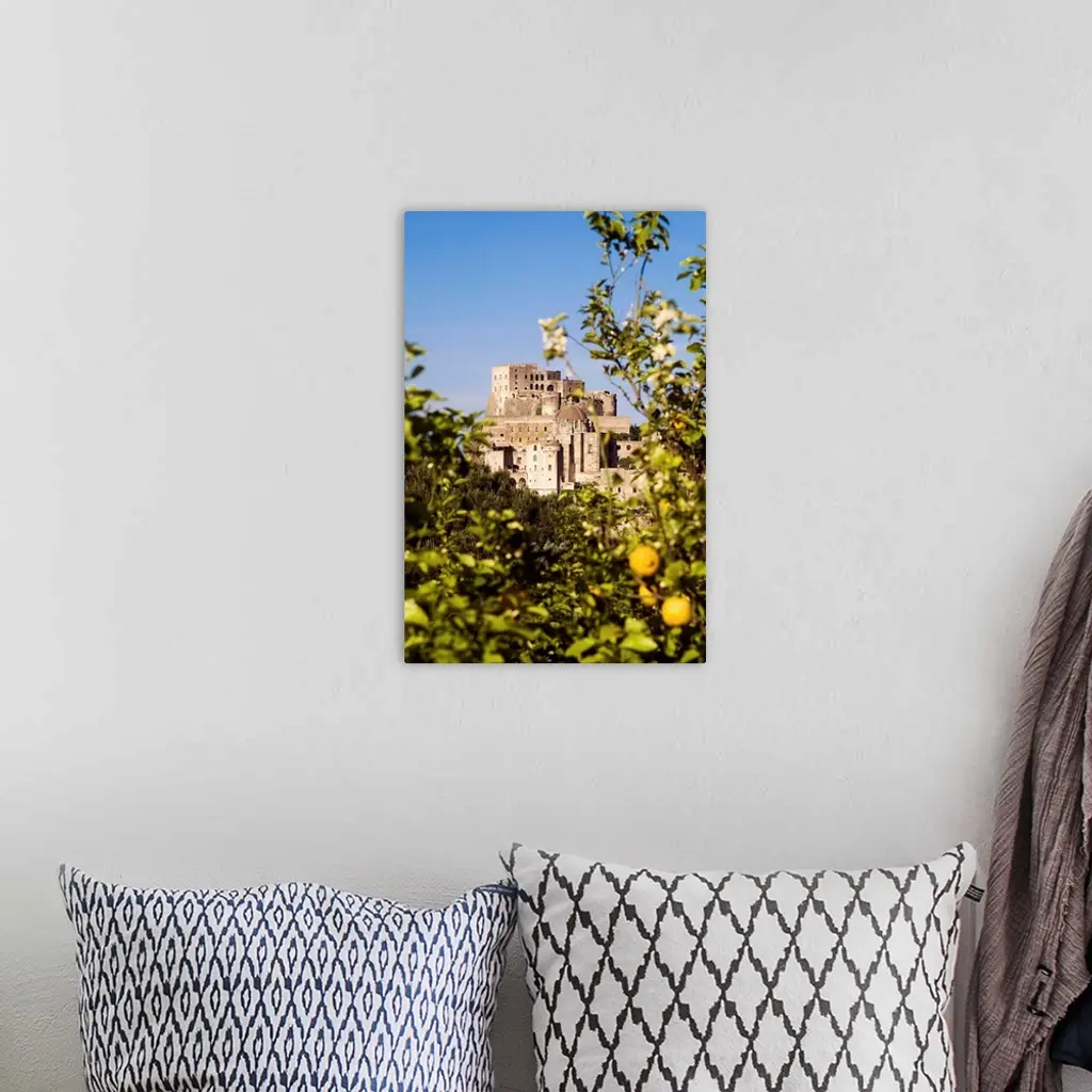 Italy, Campania, Ischia Island, Ischia Ponte, Aragonese Castle with lemon tree wall art for home and office decor. Discover canvas art prints, photos, mural, big canvas art and framed wall art in GreatBigCanvas.com's varied collections.