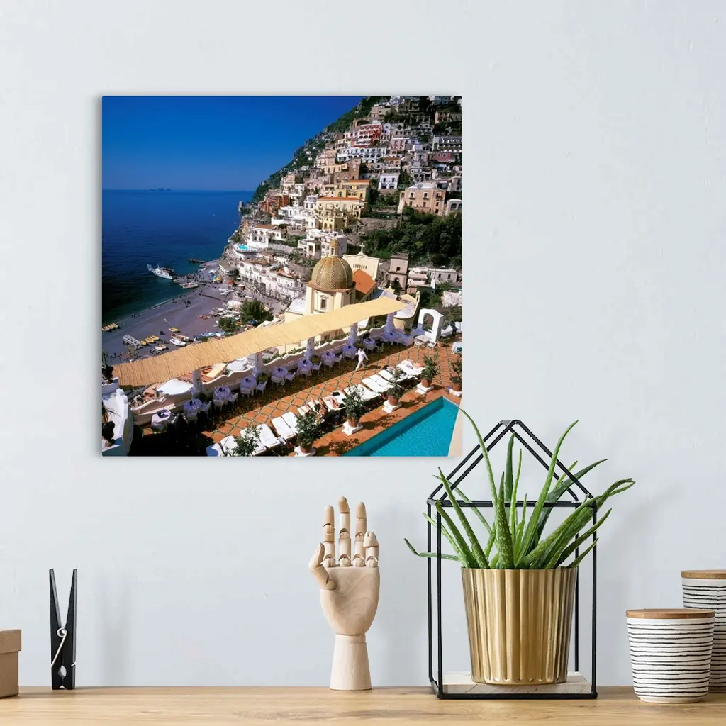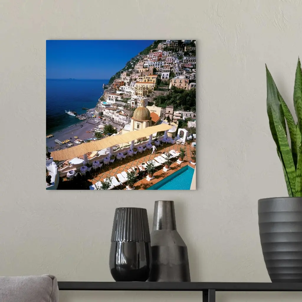 Italy, Campania, Positano, hotel, town and beach, Amalfi coast wall art for home and office decor. Discover canvas art prints, photos, mural, big canvas art and framed wall art in GreatBigCanvas.com's varied collections.