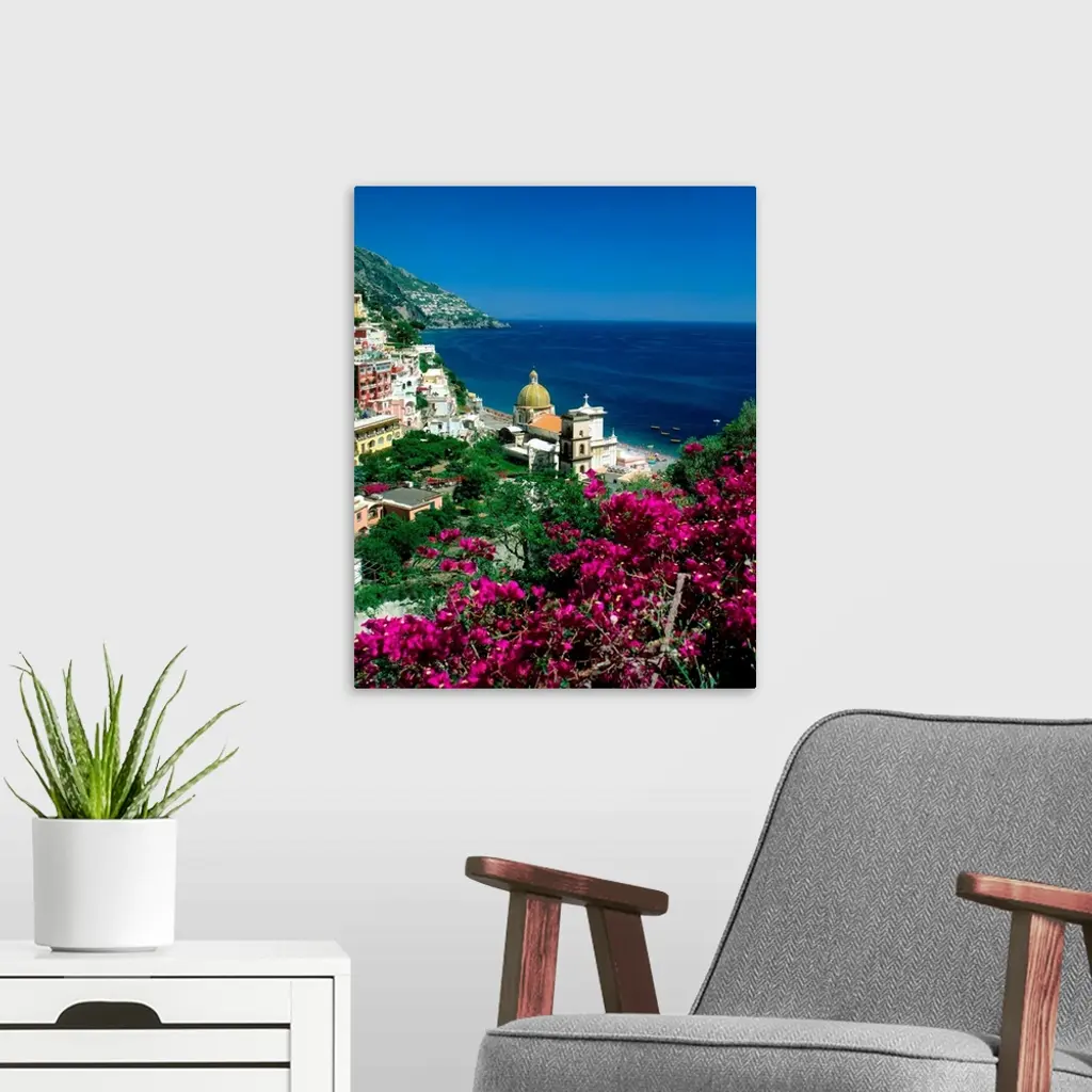 Italy, Campania, Positano, view over town and coast, Amalfi coast wall art for home and office decor. Discover canvas art prints, photos, mural, big canvas art and framed wall art in GreatBigCanvas.com's varied collections.