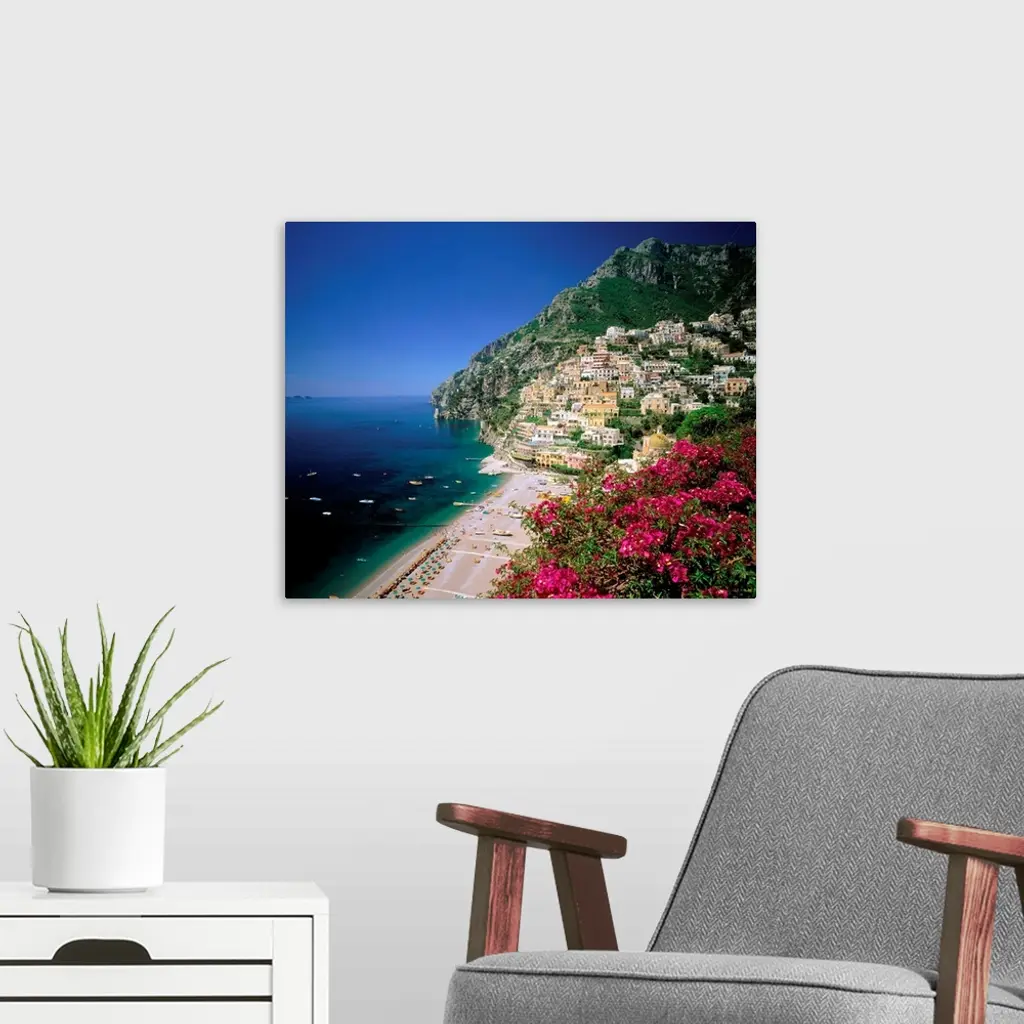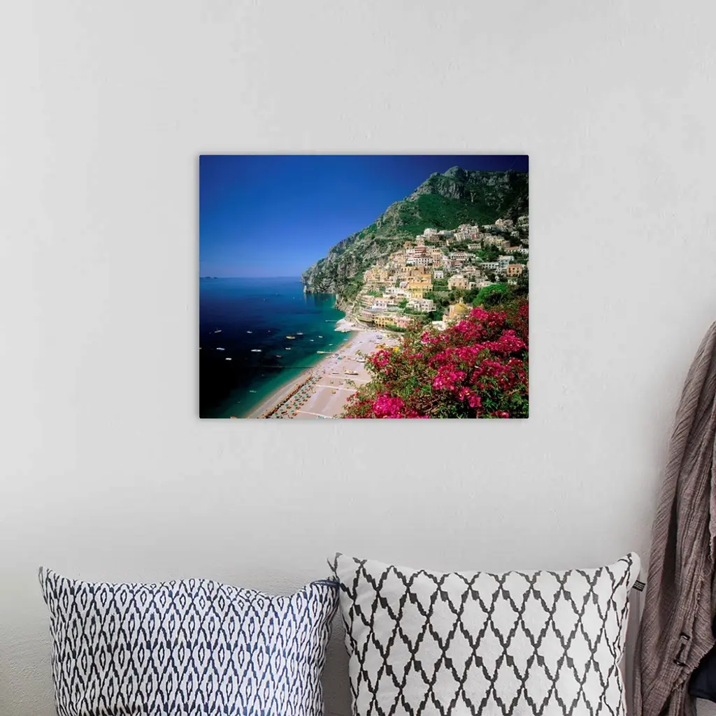 Italy, Campania, Positano, view over town and coast, Amalfi coast wall art for home and office decor. Discover canvas art prints, photos, mural, big canvas art and framed wall art in GreatBigCanvas.com's varied collections.