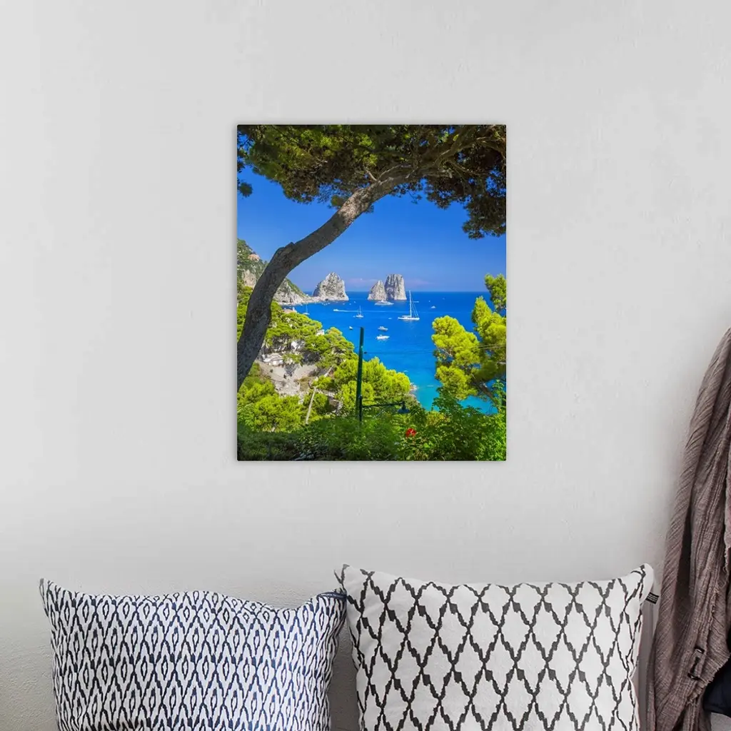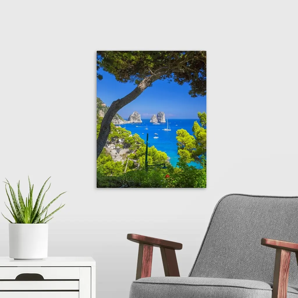 Italy, Campania, Tyrrhenian Coast, Capri, Marina Piccola, Faraglioni