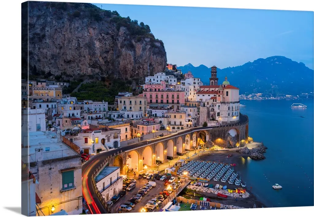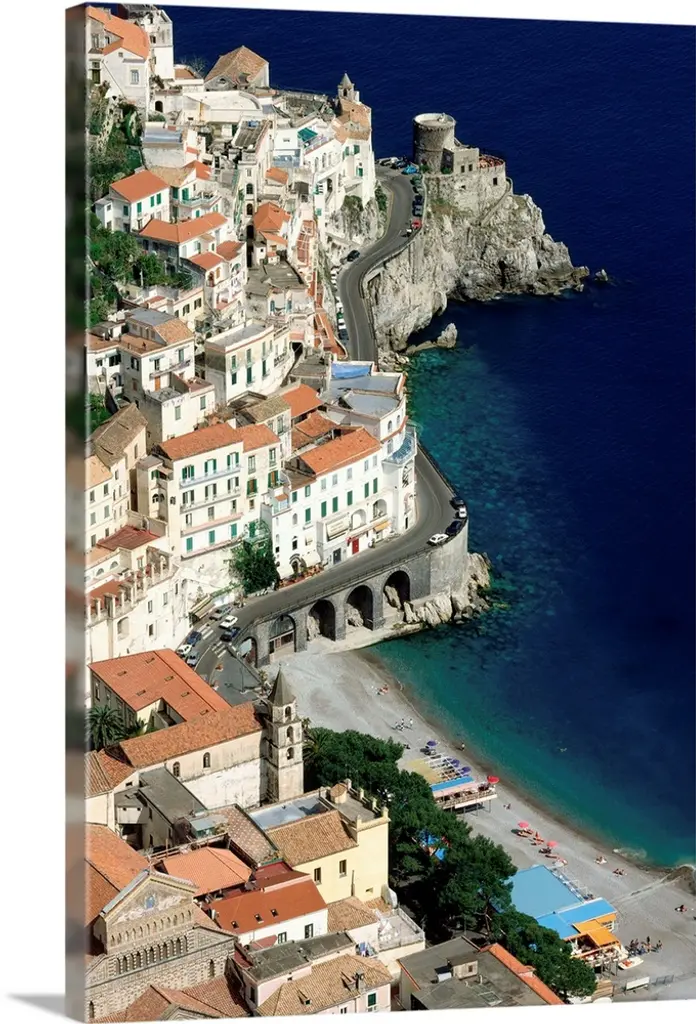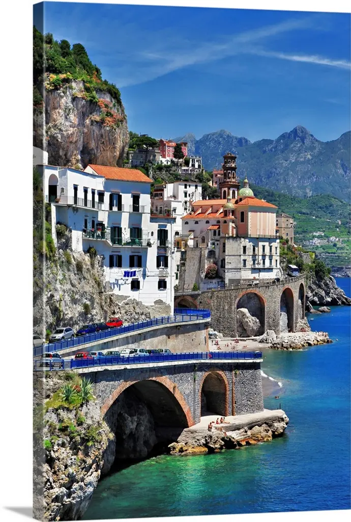 Italy, Campania, Tyrrhenian coast, Peninsula of Sorrento, Amalfi, View of the town wall art for home and office decor. Discover canvas art prints, photos, mural, big canvas art and framed wall art in GreatBigCanvas.com's varied collections.