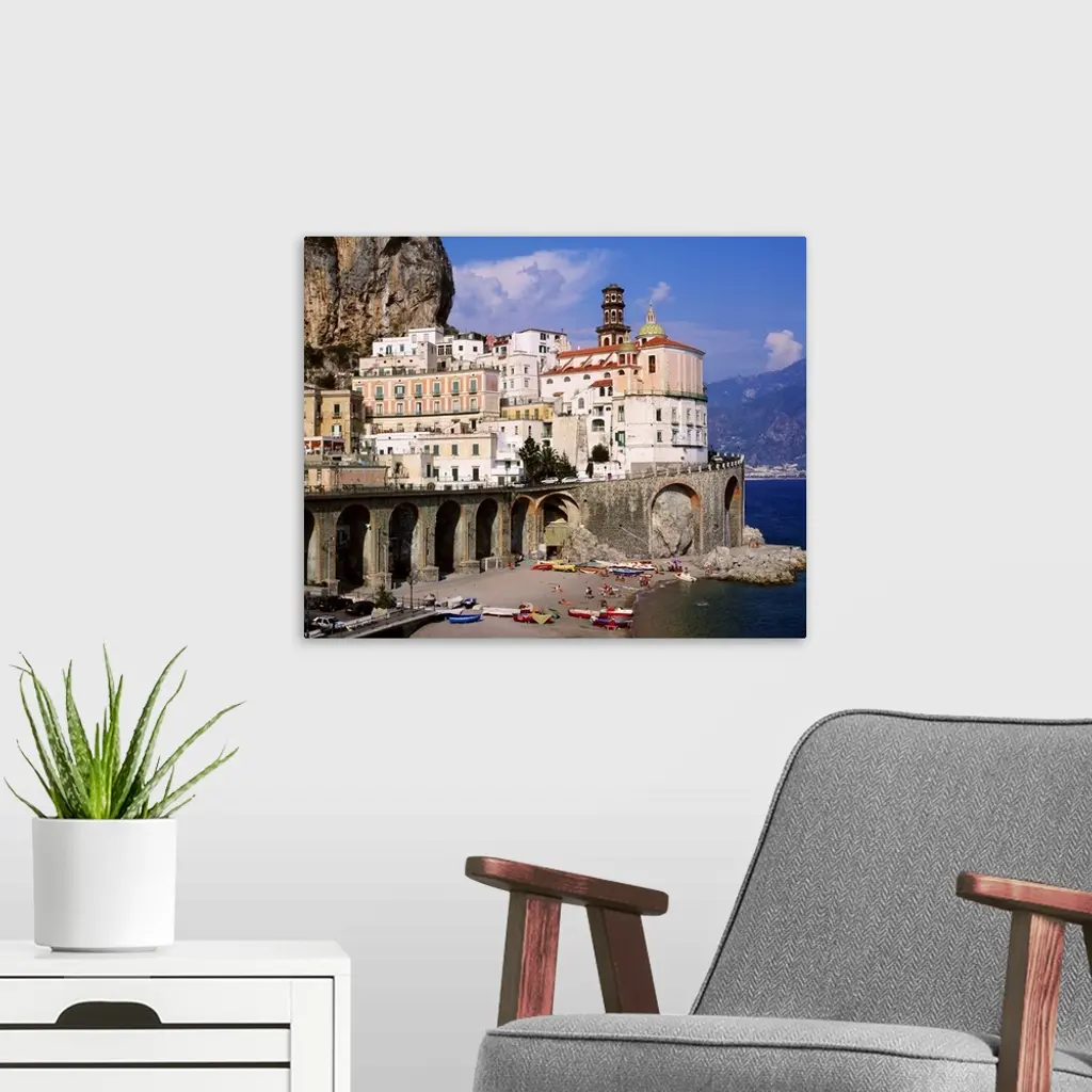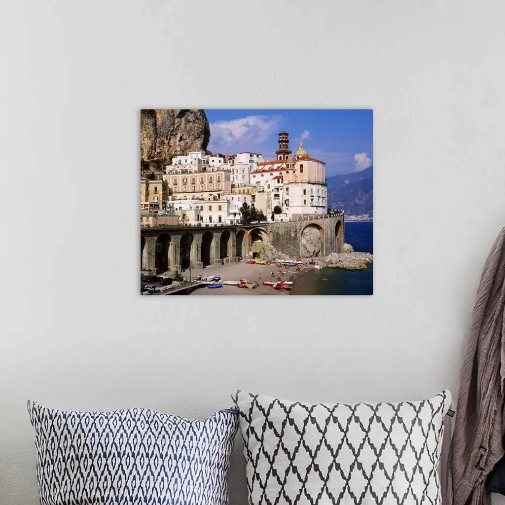 Italy, Campania, Tyrrhenian coast, Peninsula of Sorrento, Atrani, View of the village wall art for home and office decor. Discover canvas art prints, photos, mural, big canvas art and framed wall art in GreatBigCanvas.com's varied collections.