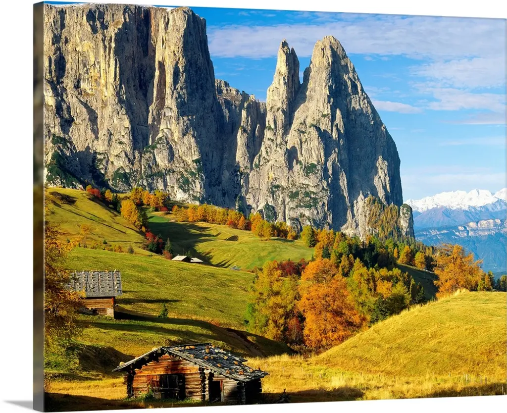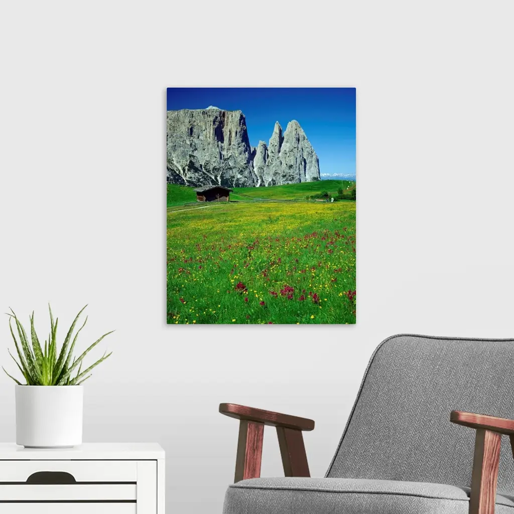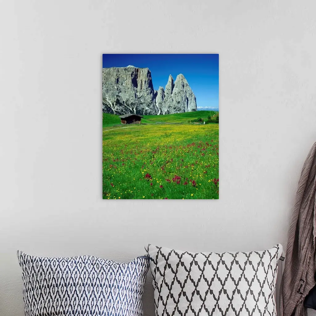 Italy, Dolomites, Swiss Alps (Seiser Alm), view towards Sciliar (Schlern) wall art for home and office decor. Discover canvas art prints, photos, mural, big canvas art and framed wall art in GreatBigCanvas.com's varied collections.