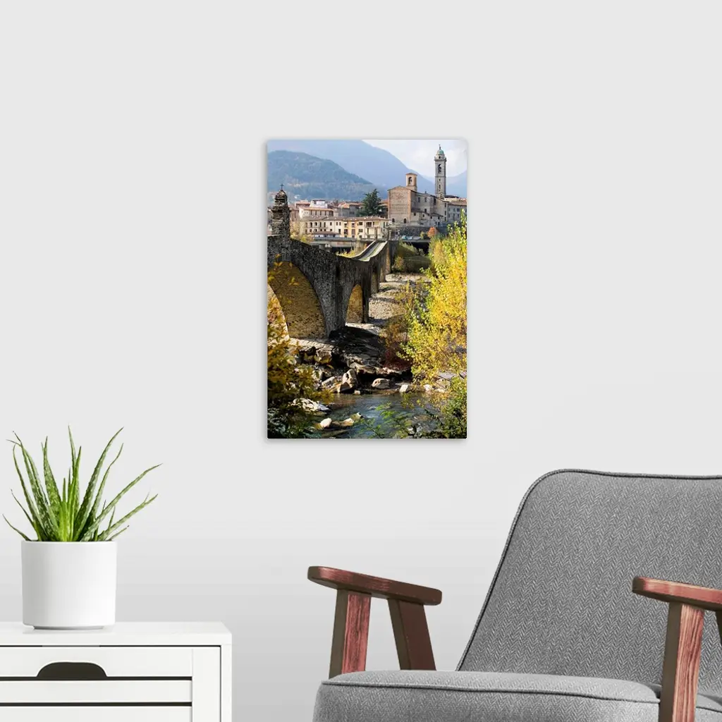Italy, Emilia-Romagna, Bobbio Town, Gobbo Bridge On Trebbia River
