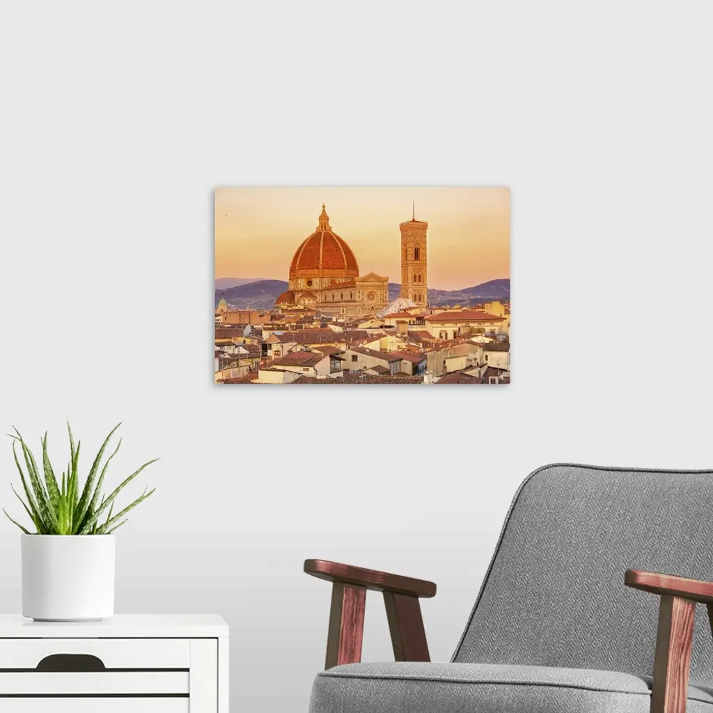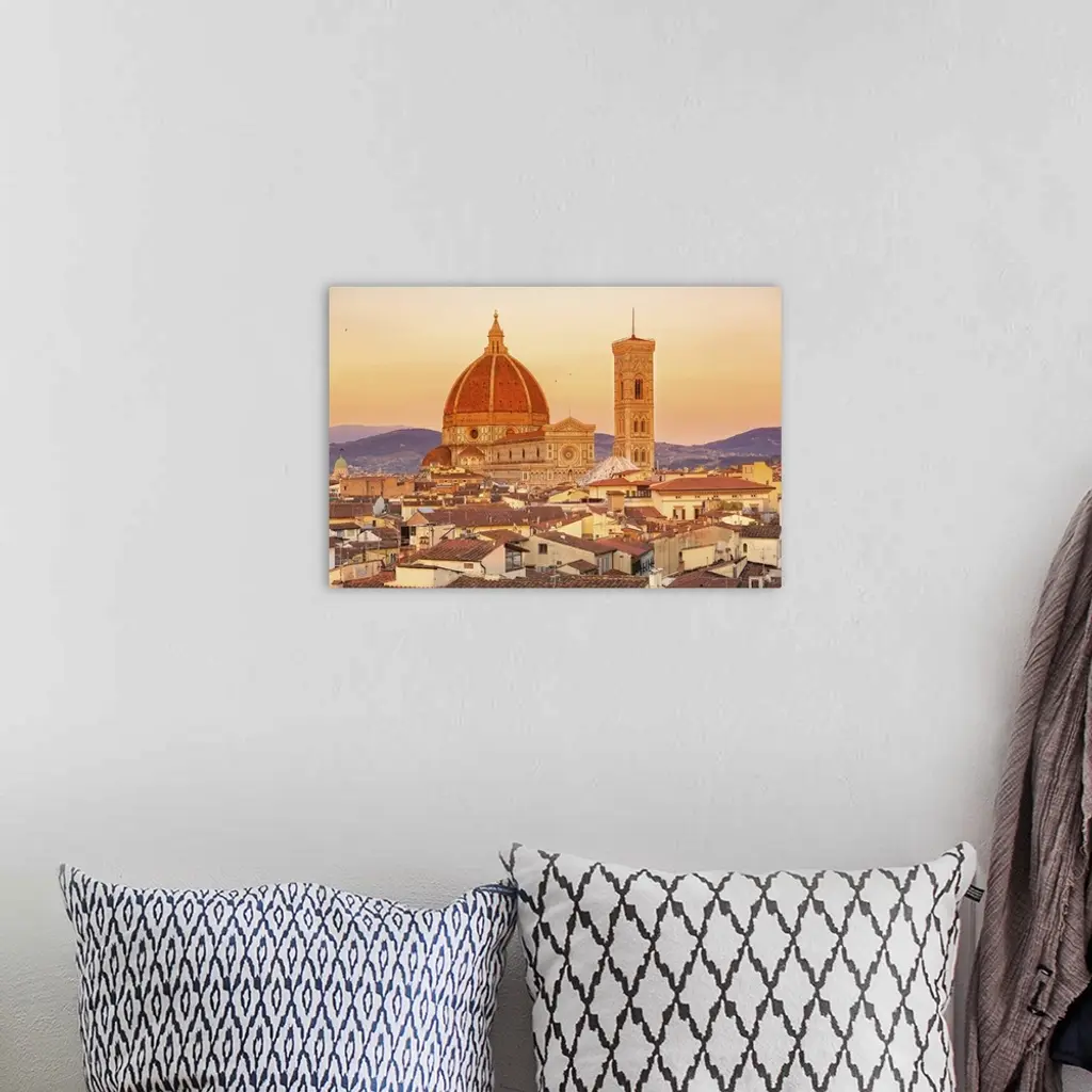 Italy, Florence, Duomo Santa Maria Del Fiore, Duomo And Giotto's Bell Tower At Sunset