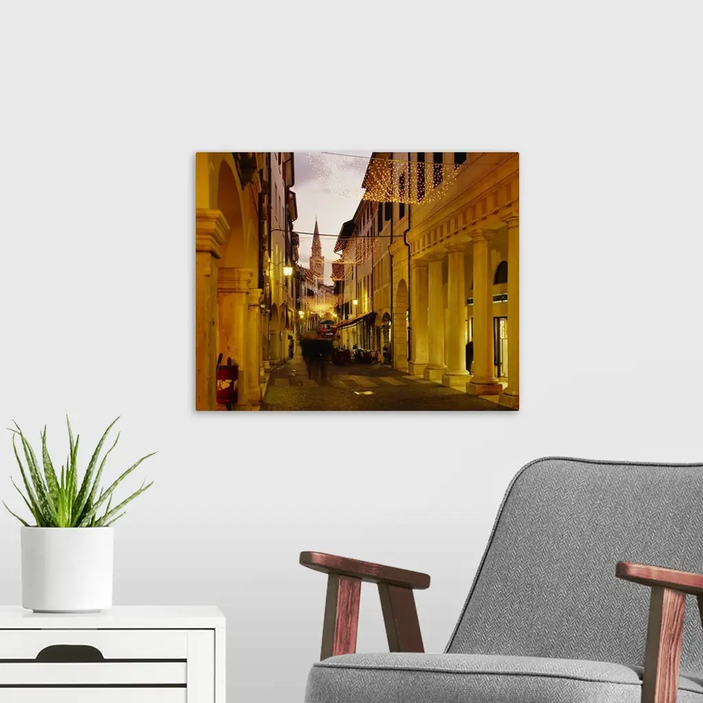 Italy, Friuli, Podenone, Corso Vittorio Emanuele, Christmas decoration wall art for home and office decor. Discover canvas art prints, photos, mural, big canvas art and framed wall art in GreatBigCanvas.com's varied collections.