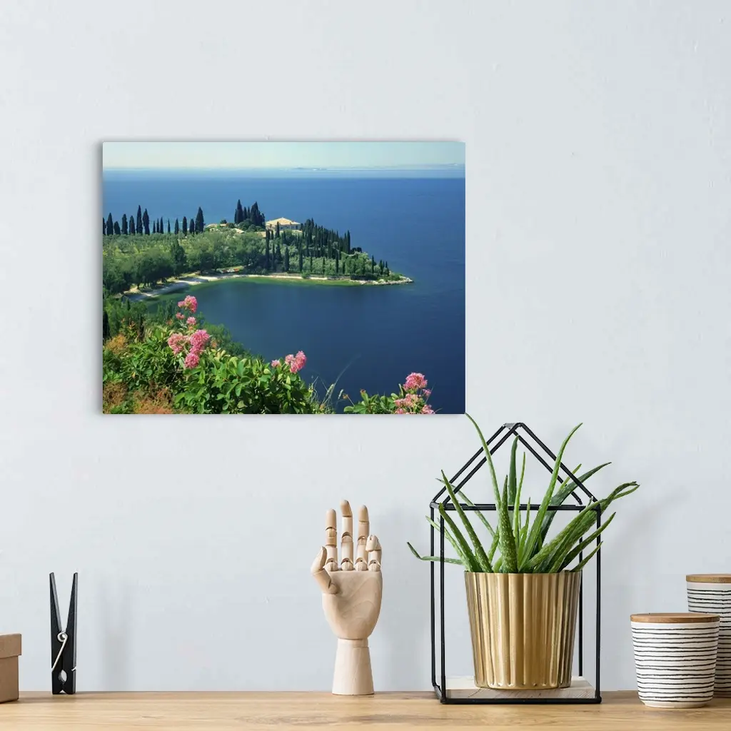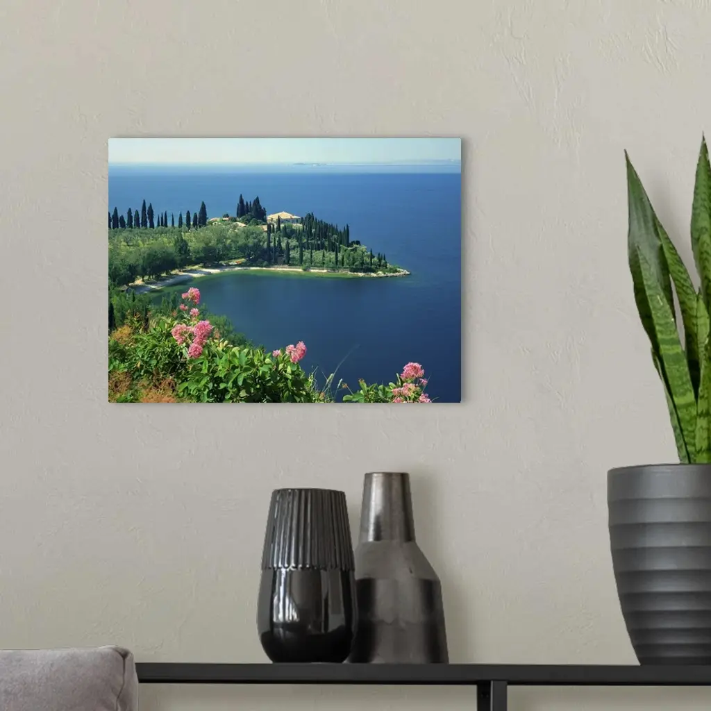 Italy, Lake Garda, Punta San Vigilio, Baia delle Sirene wall art for home and office decor. Discover canvas art prints, photos, mural, big canvas art and framed wall art in GreatBigCanvas.com's varied collections.