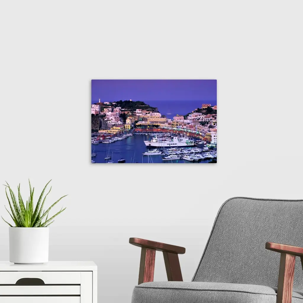 Vista del porto, la piazzetta e il lungoporto, il cuore della cittadina di Ponza.