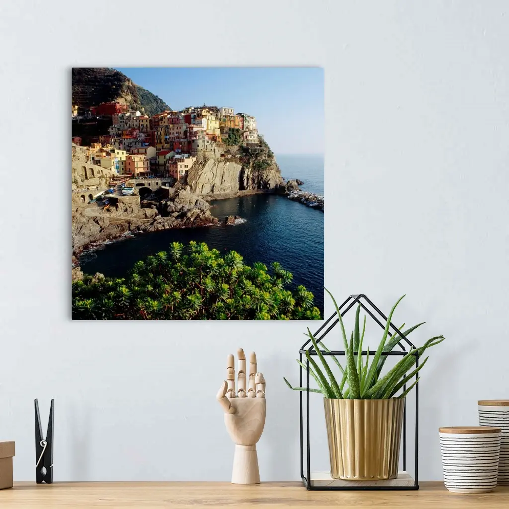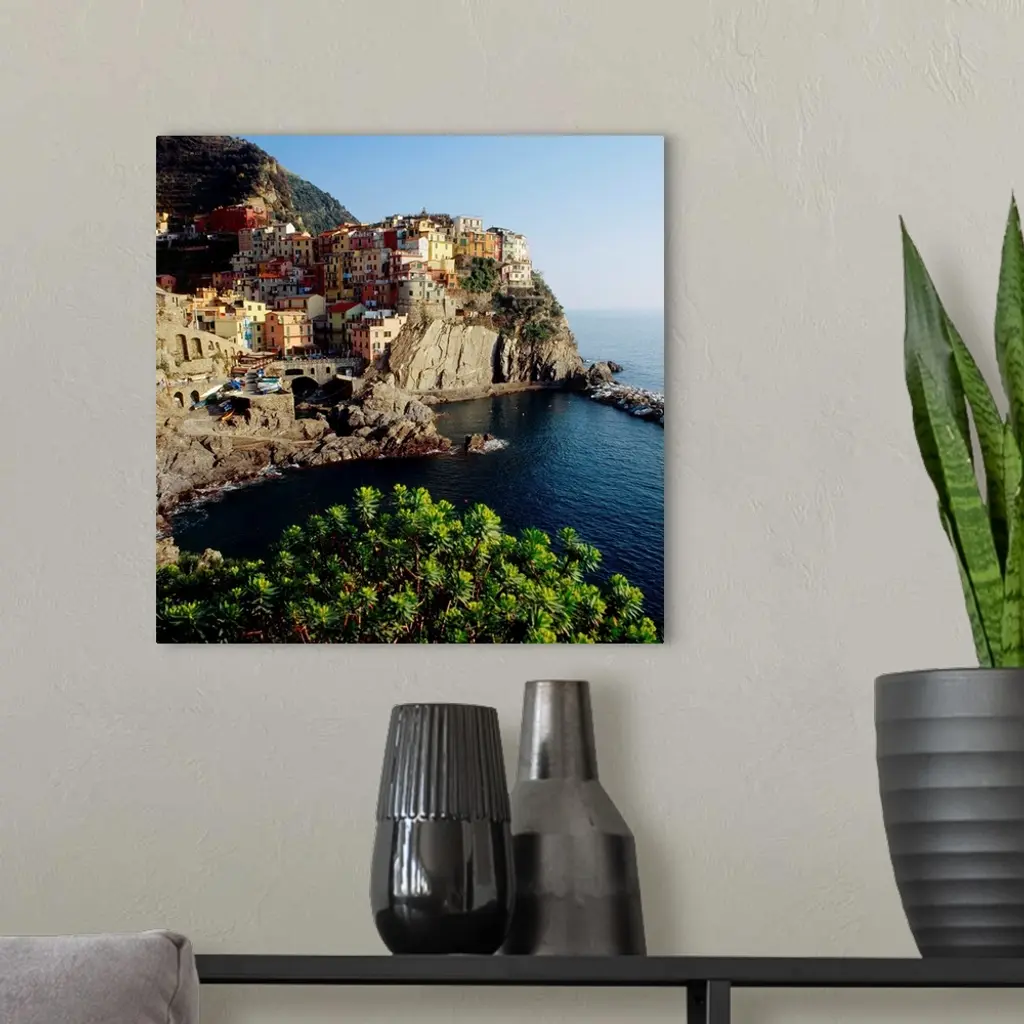 Italy, Liguria, Cinque Terre, Manarola, view towards the village wall art for home and office decor. Discover canvas art prints, photos, mural, big canvas art and framed wall art in GreatBigCanvas.com's varied collections.