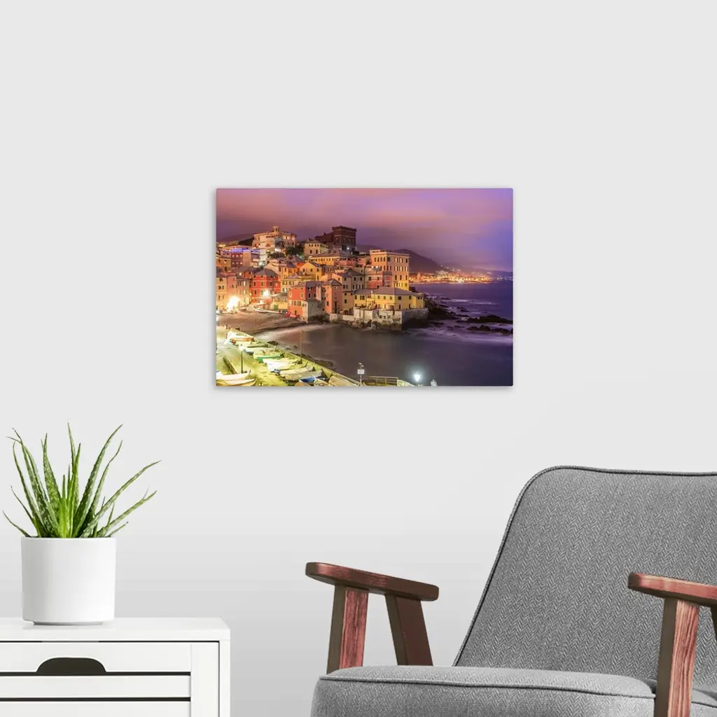 Italy, Liguria, Mediterranean sea, Ligurian sea, Ligurian Riviera, Genova district, Genoa, Boccadasse at night.