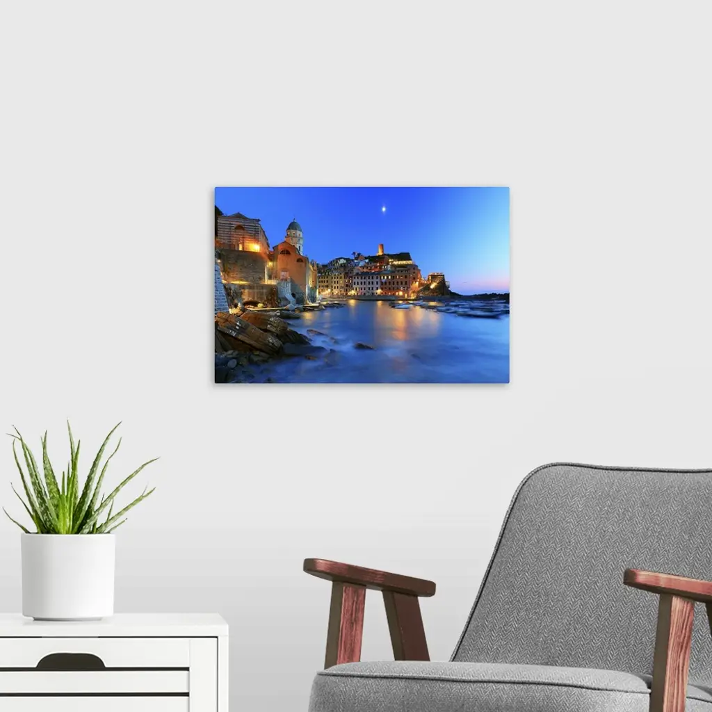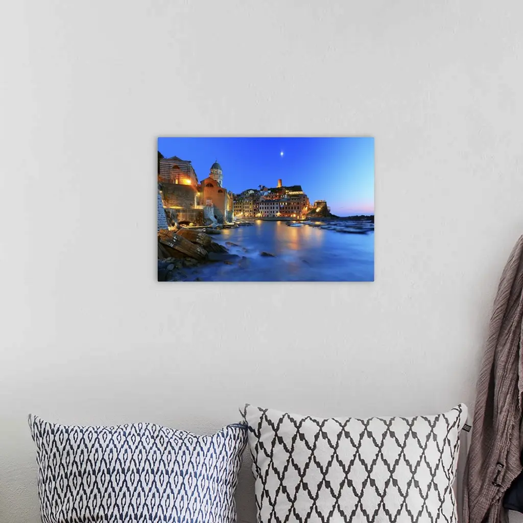 Italy, Liguria, Mediterranean Sea, Cinque Terre, The Vernazza Village, Evening Lights