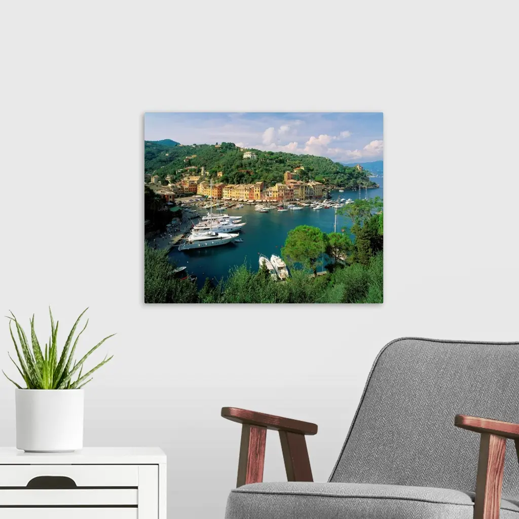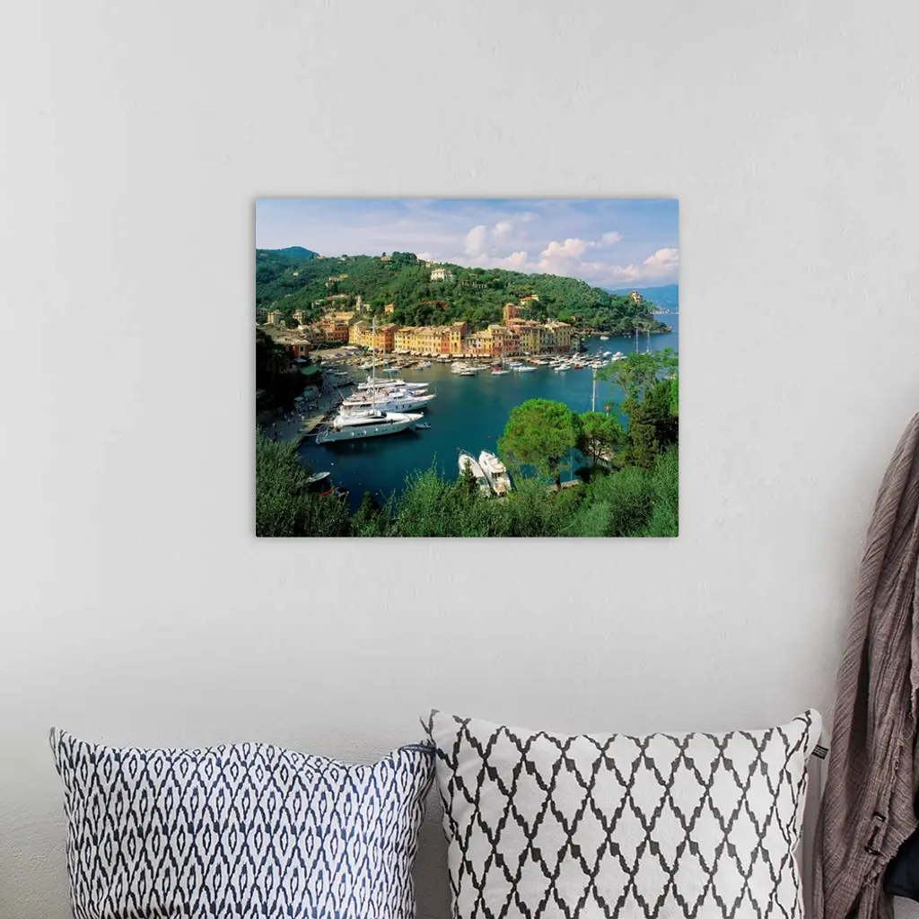 Italy, Liguria, Portofino, The harbor wall art for home and office decor. Discover canvas art prints, photos, mural, big canvas art and framed wall art in GreatBigCanvas.com's varied collections.
