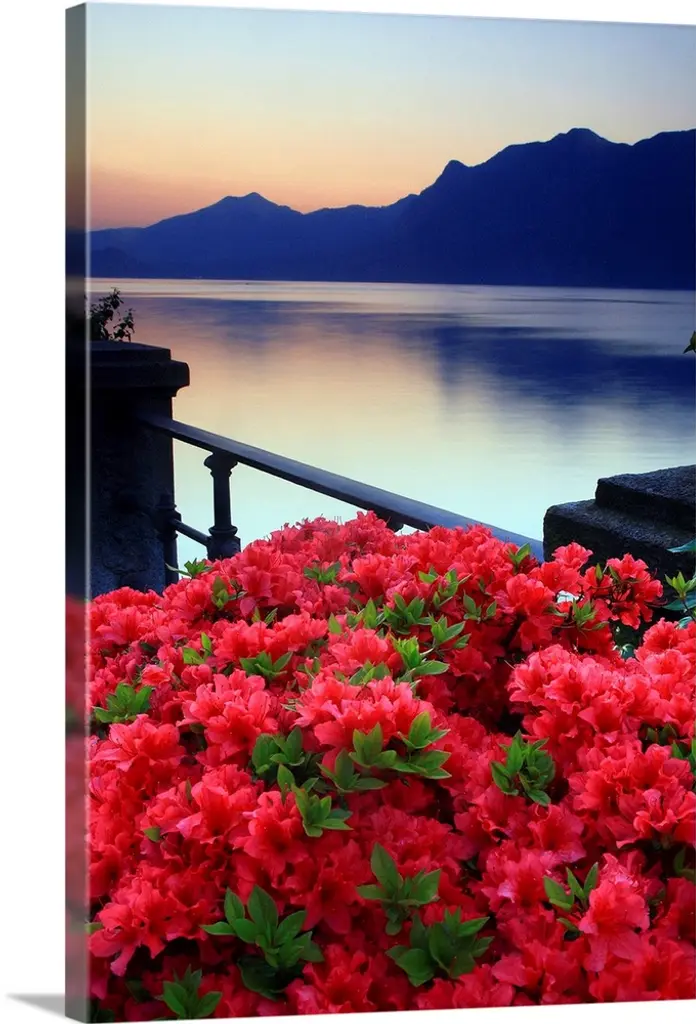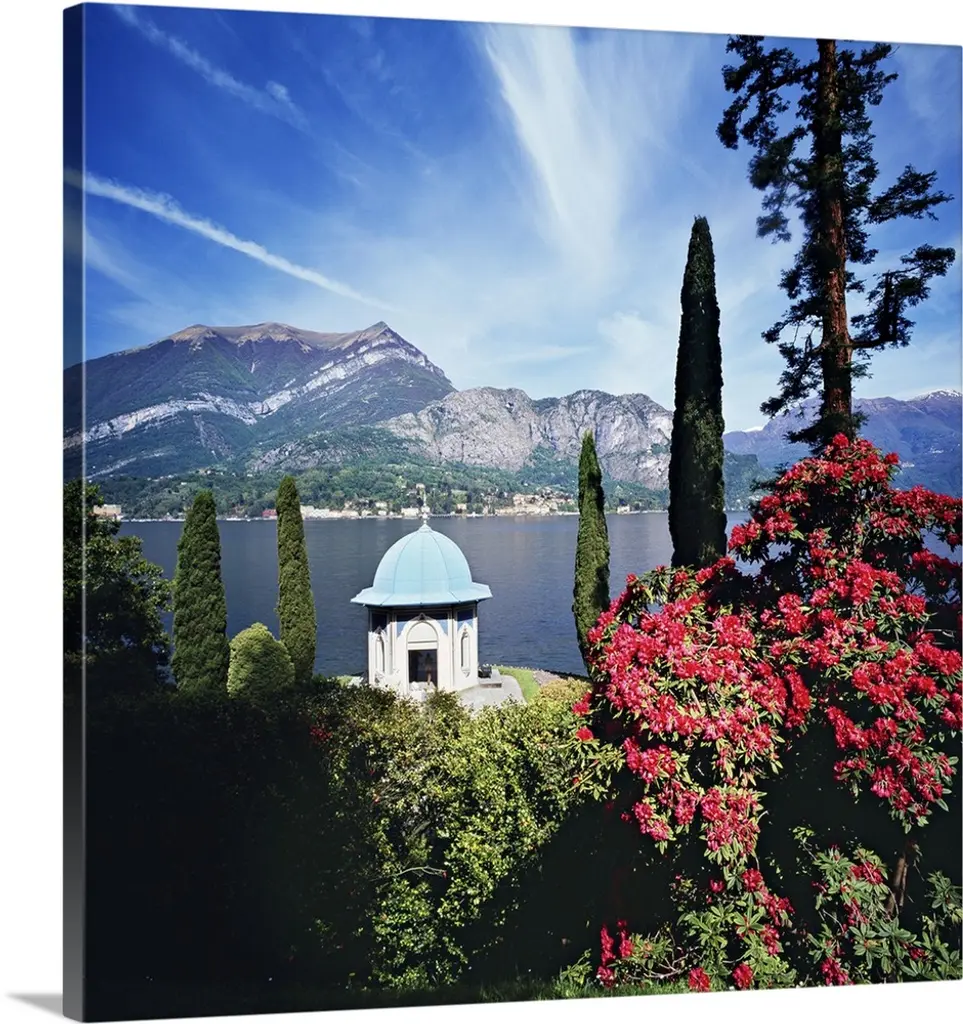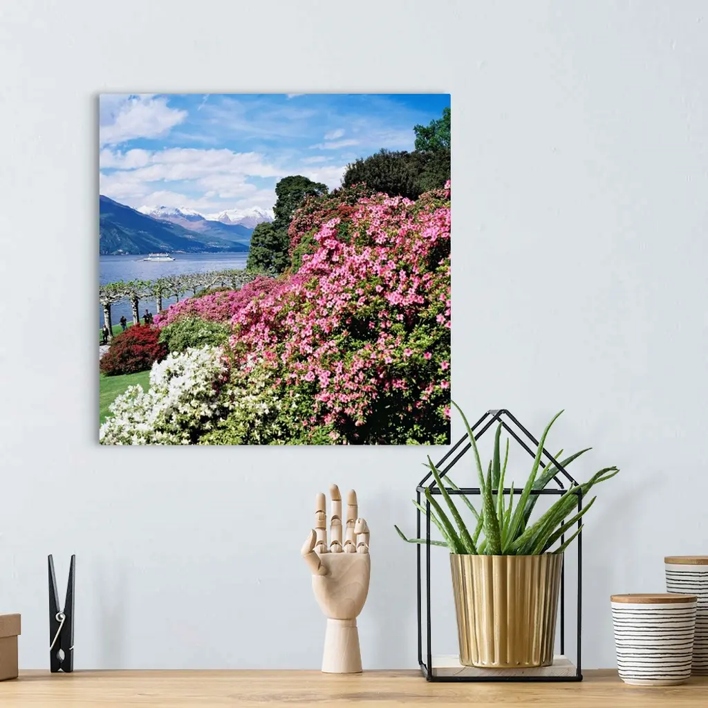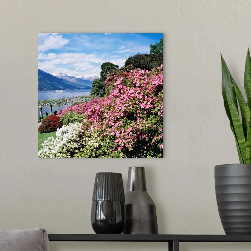 Italy, Lombardy, Como Lake, Bellagio, Park With Rhododendron On Lakeside