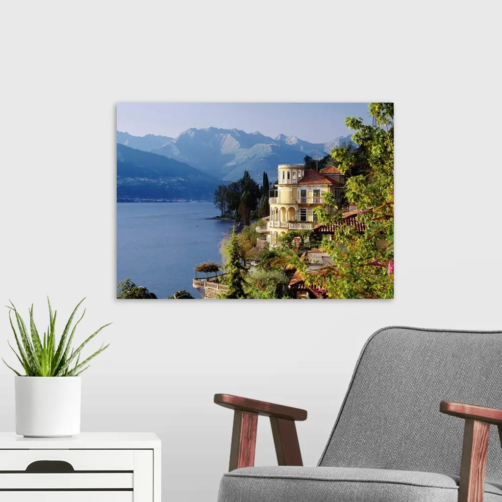 Italy, Lombardy, Como Lake, Corenno Plinio, villa wall art for home and office decor. Discover canvas art prints, photos, mural, big canvas art and framed wall art in GreatBigCanvas.com's varied collections.