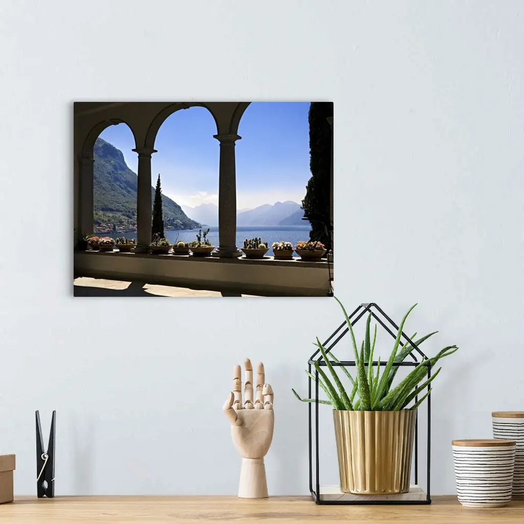 Italy, Lombardy, Como Lake, Varenna, View of the lake from Villa Monastero wall art for home and office decor. Discover canvas art prints, photos, mural, big canvas art and framed wall art in GreatBigCanvas.com's varied collections.