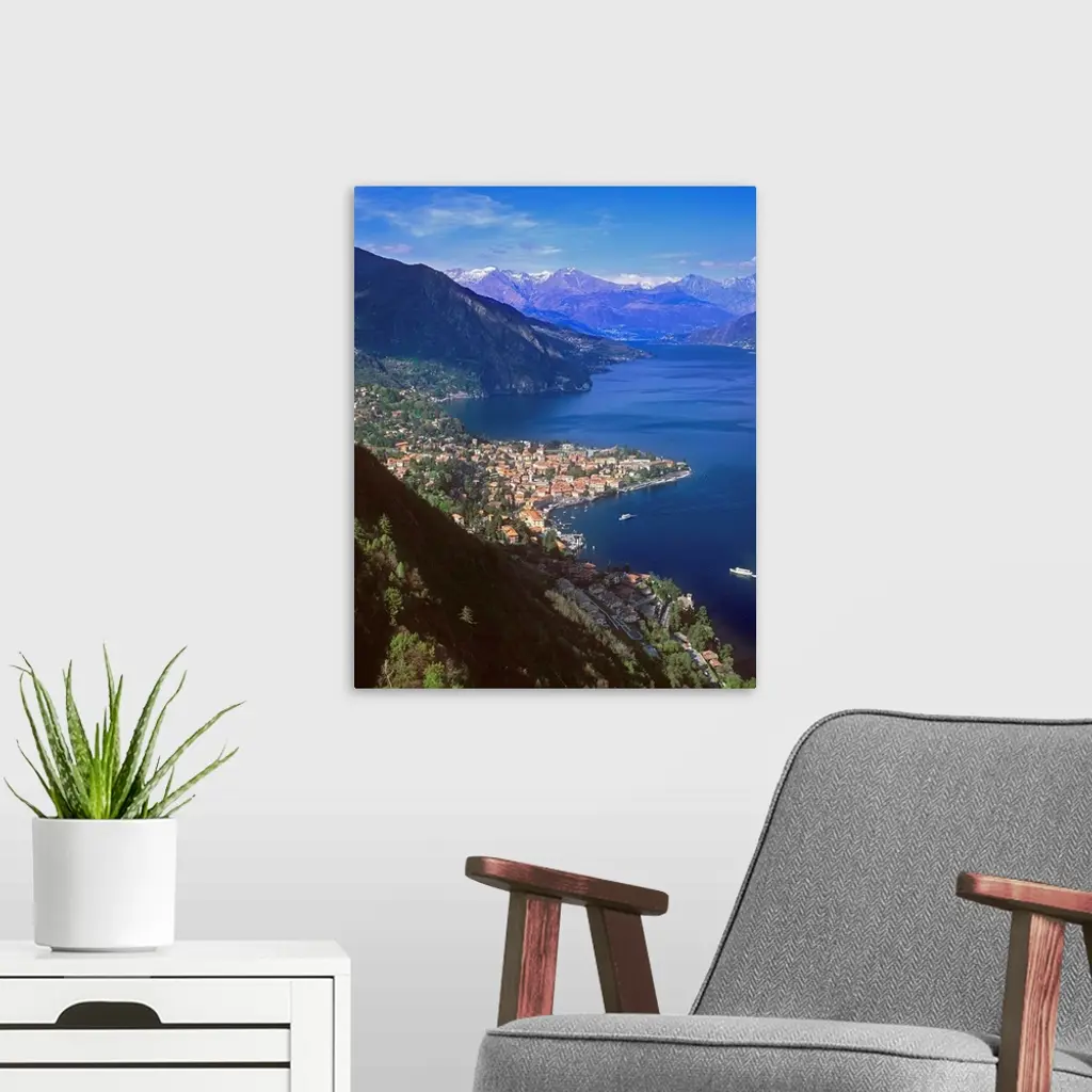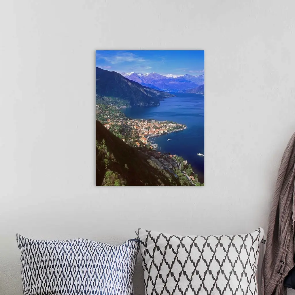 Italy, Lombardy, Como Lake, View towards Menaggio town wall art for home and office decor. Discover canvas art prints, photos, mural, big canvas art and framed wall art in GreatBigCanvas.com's varied collections.